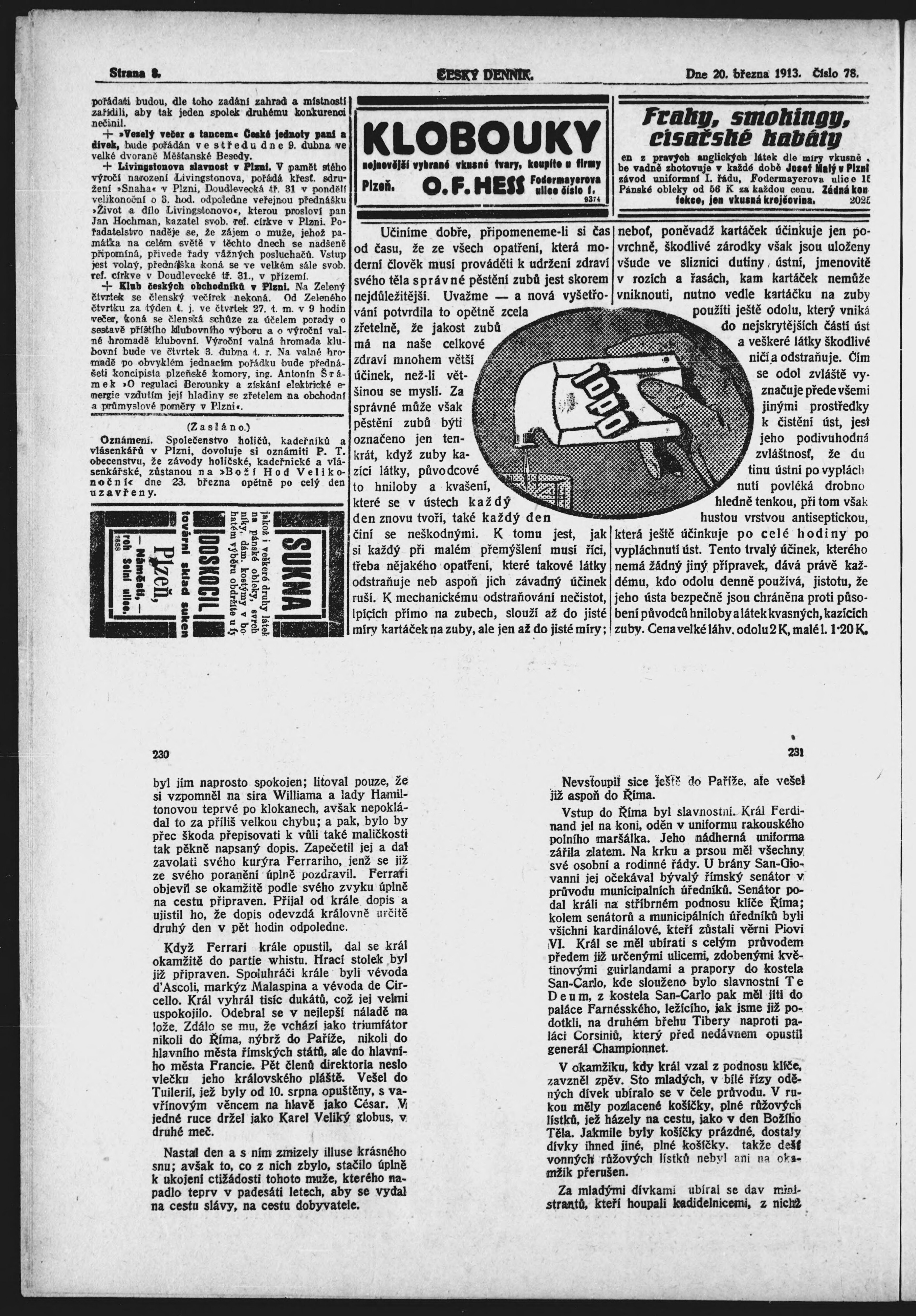 * Datum vydání výtisku: 20.3.1913 Číslo výtisku: 78