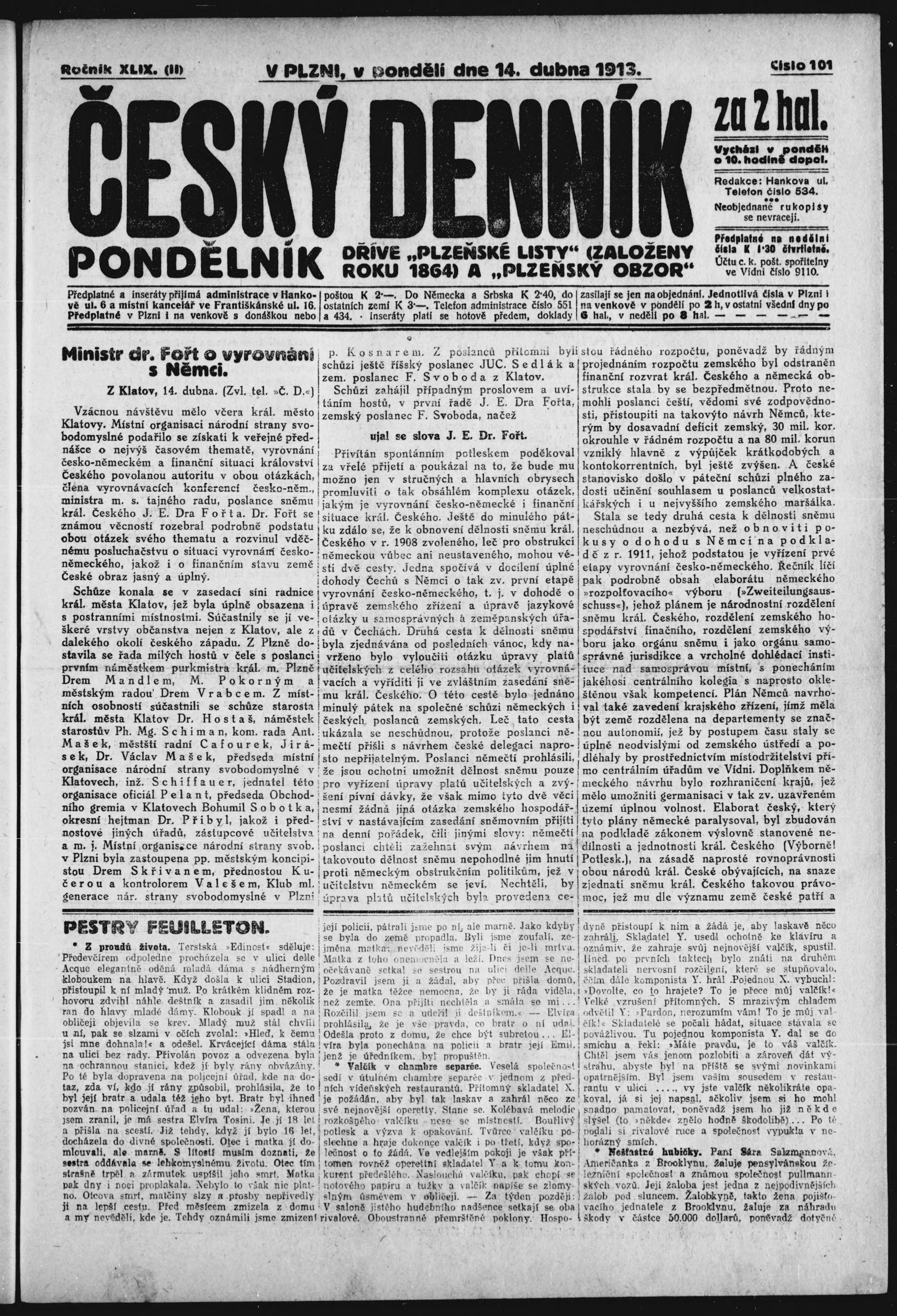* Datum vydání výtisku: 14.4.1913 Číslo výtisku: 101