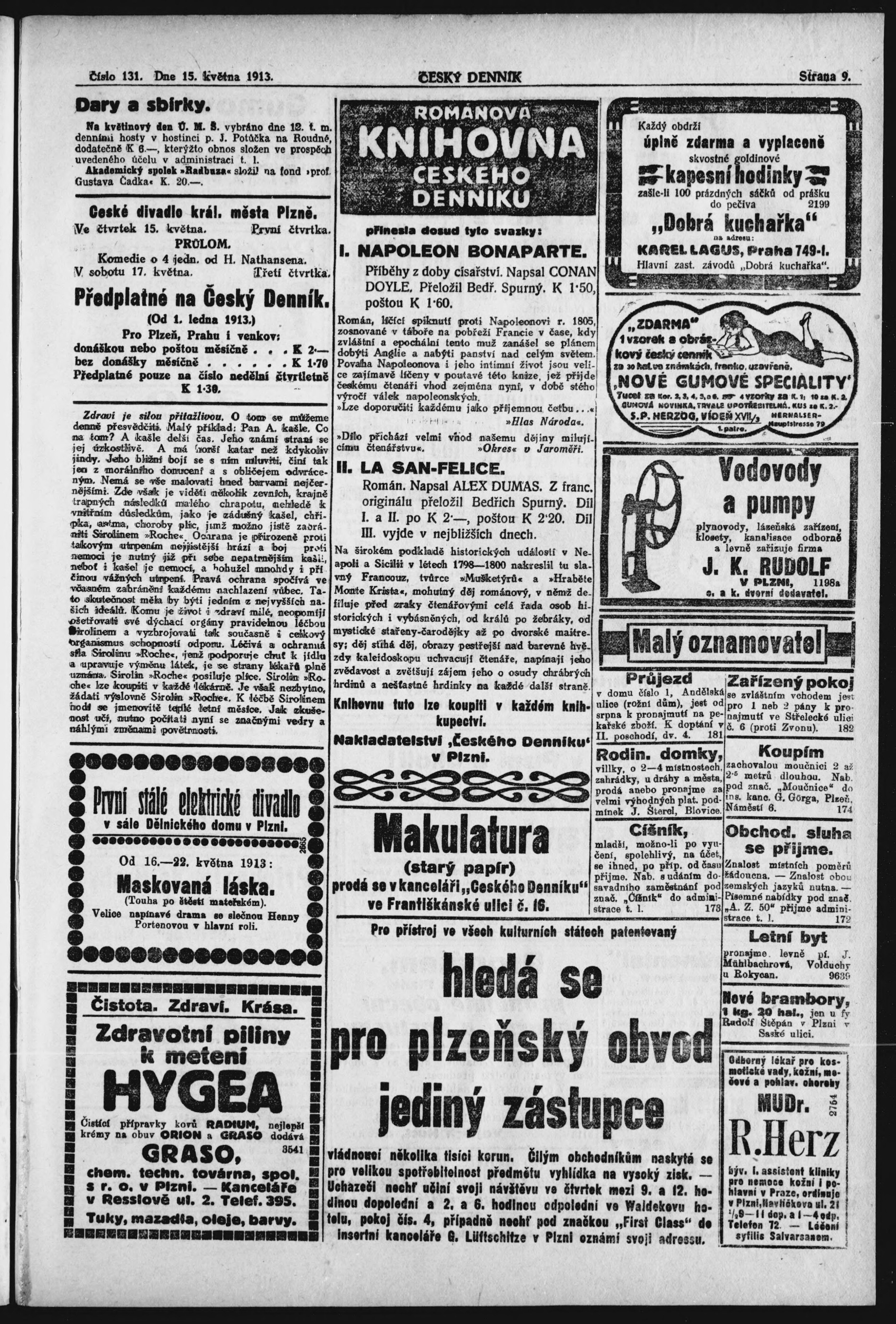 * Datum vydání výtisku: 15.5.1913 Číslo výtisku: 131