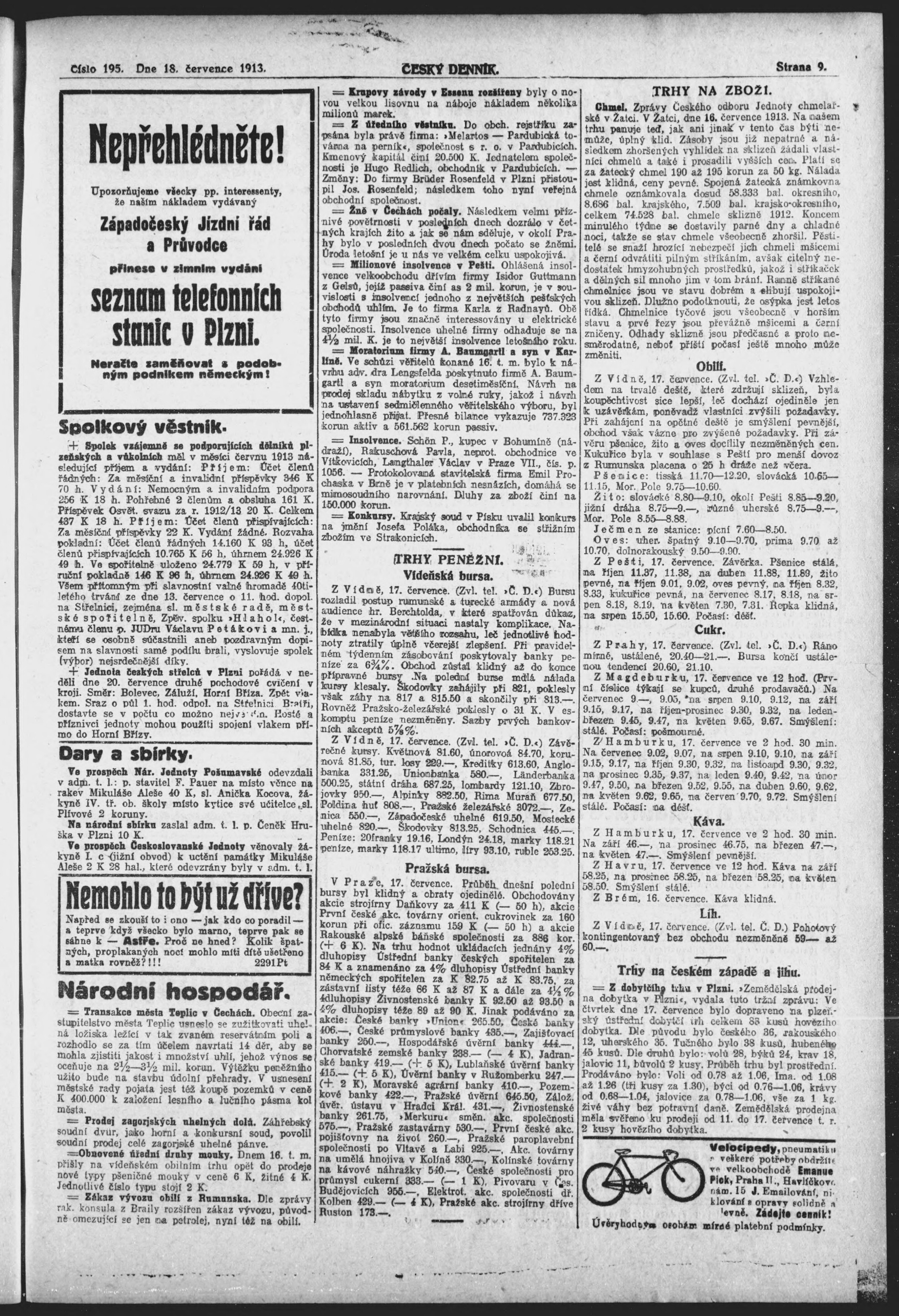 * Datum vydání výtisku: 18.7.1913 Číslo výtisku: 195