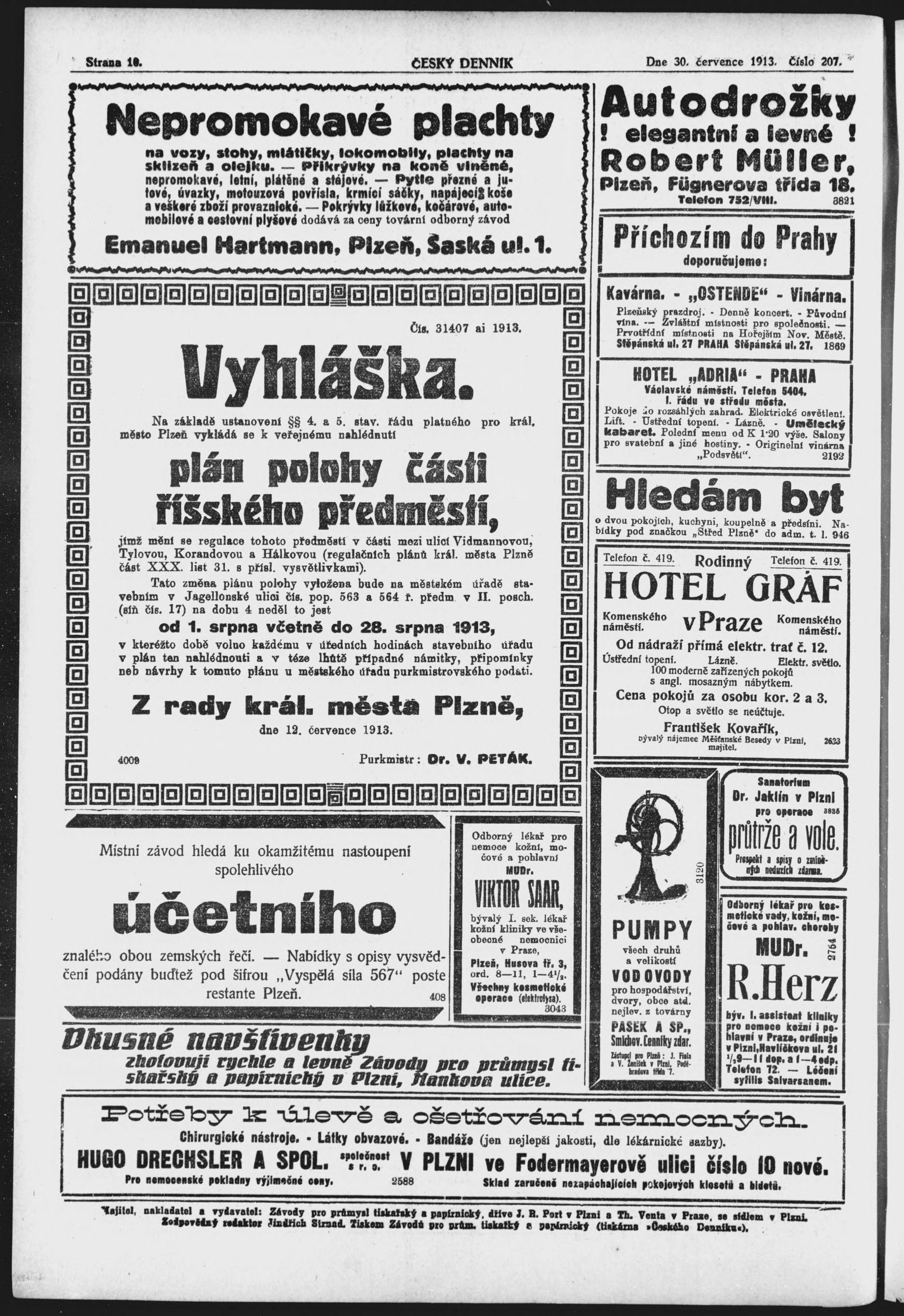 * Datum vydání výtisku: 30.7.1913 Číslo výtisku: 207