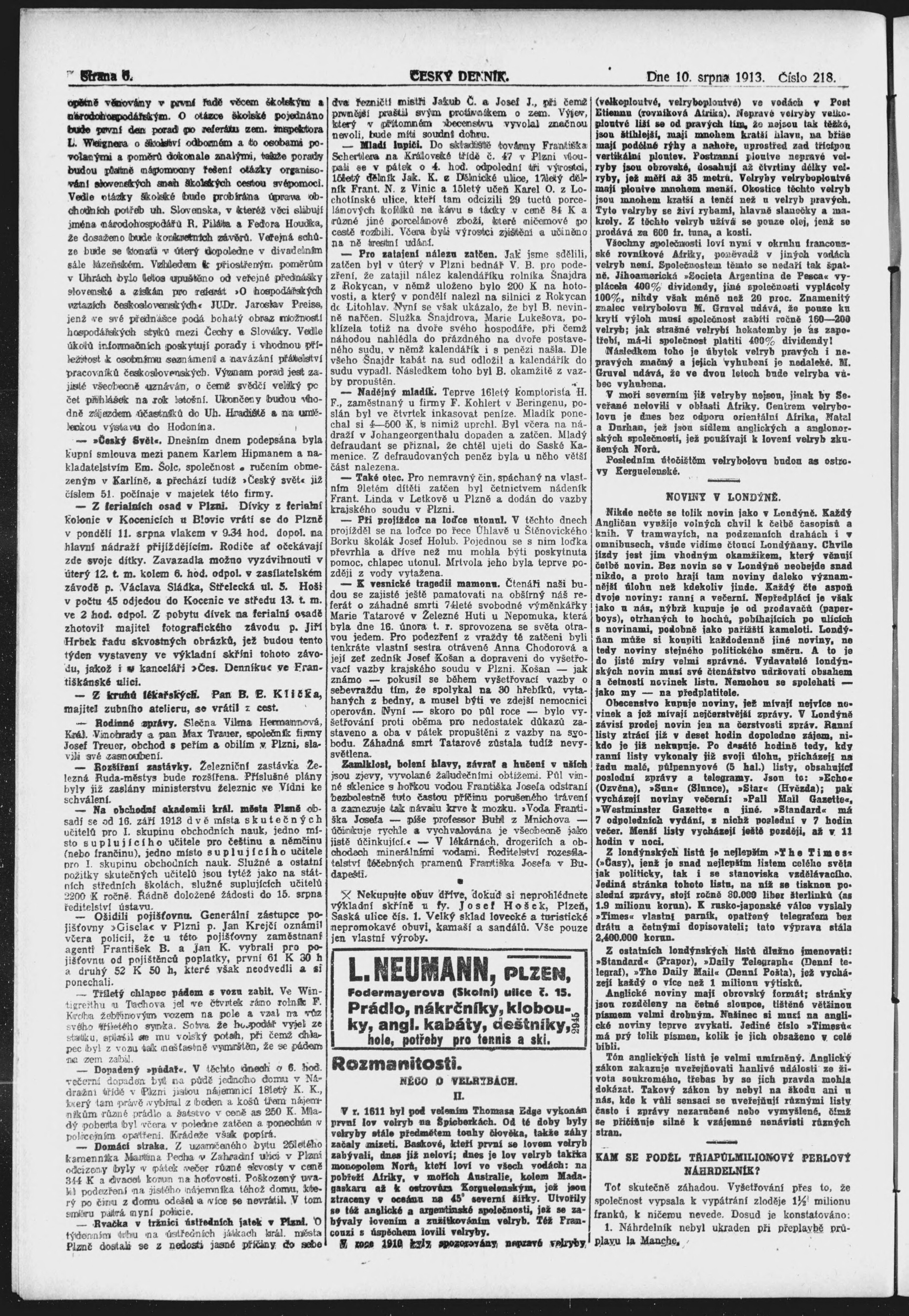 * Datum vydání výtisku: 10.8.1913 Číslo výtisku: 218