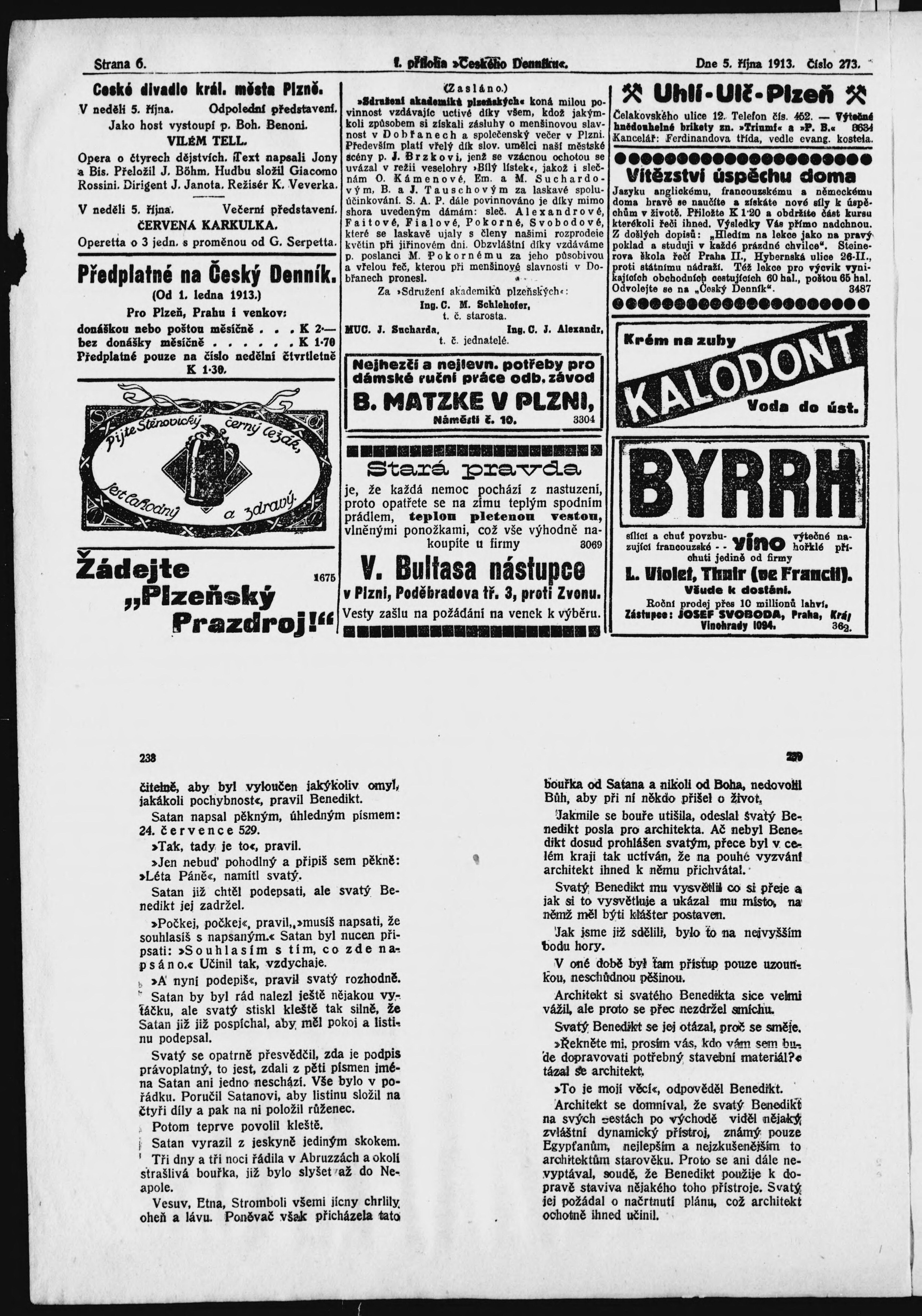 * Datum vydání výtisku: 5.10.1913 Číslo výtisku: 273 Typ výtisku: příloha