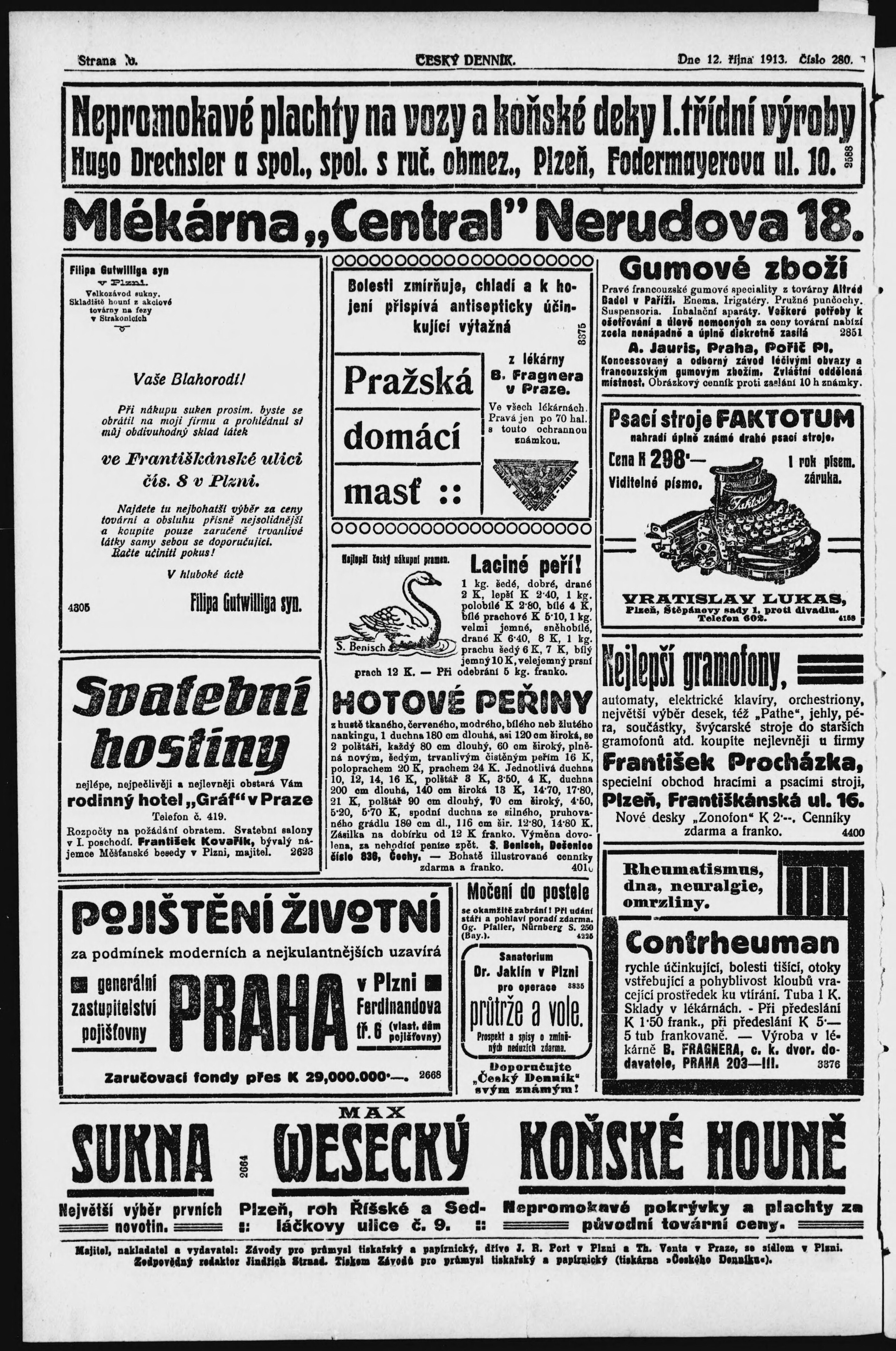 * Datum vydání výtisku: 12.10.1913 Číslo výtisku: 280