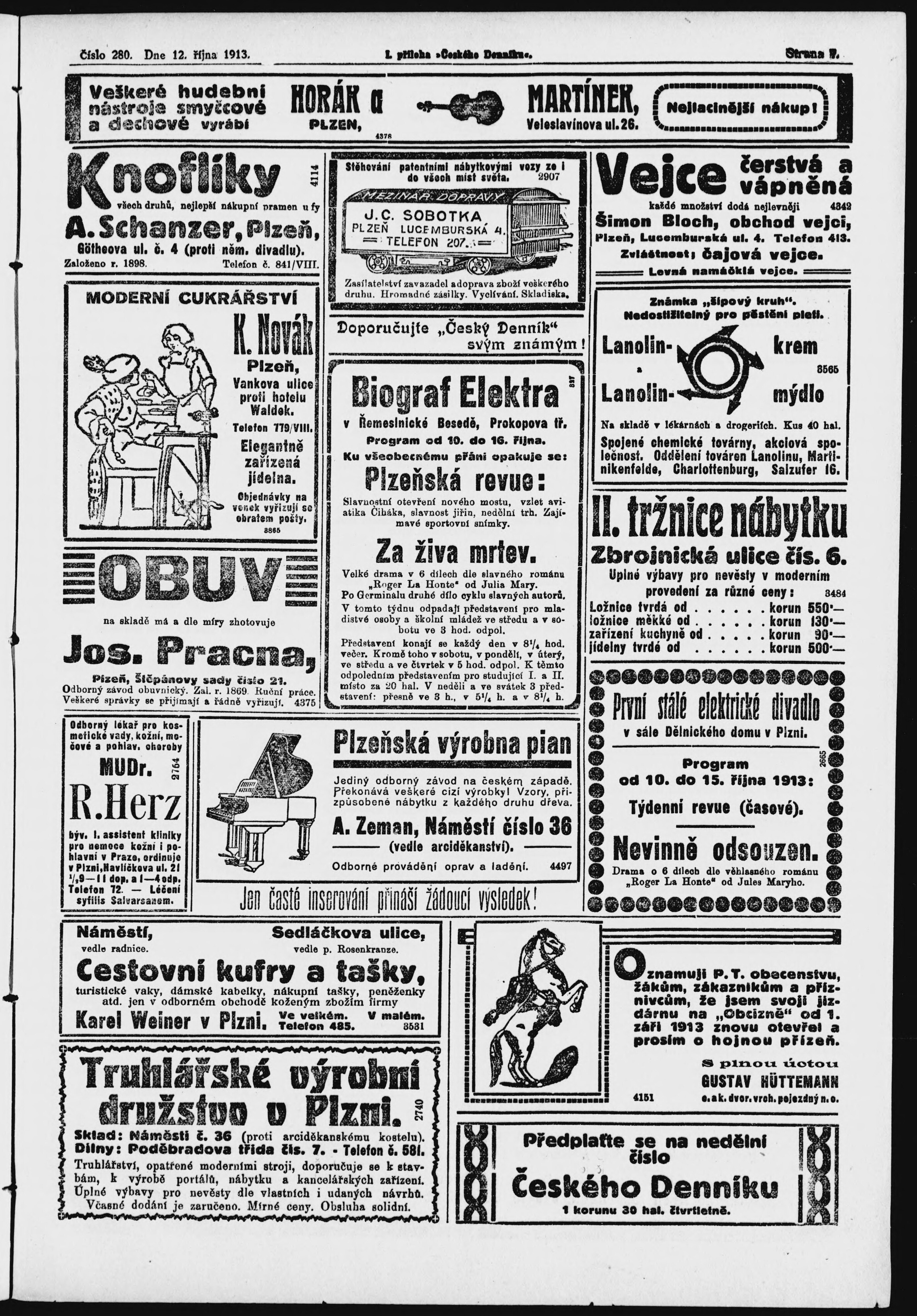 * Datum vydání výtisku: 12.10.1913 Číslo výtisku: 280 Typ výtisku: příloha
