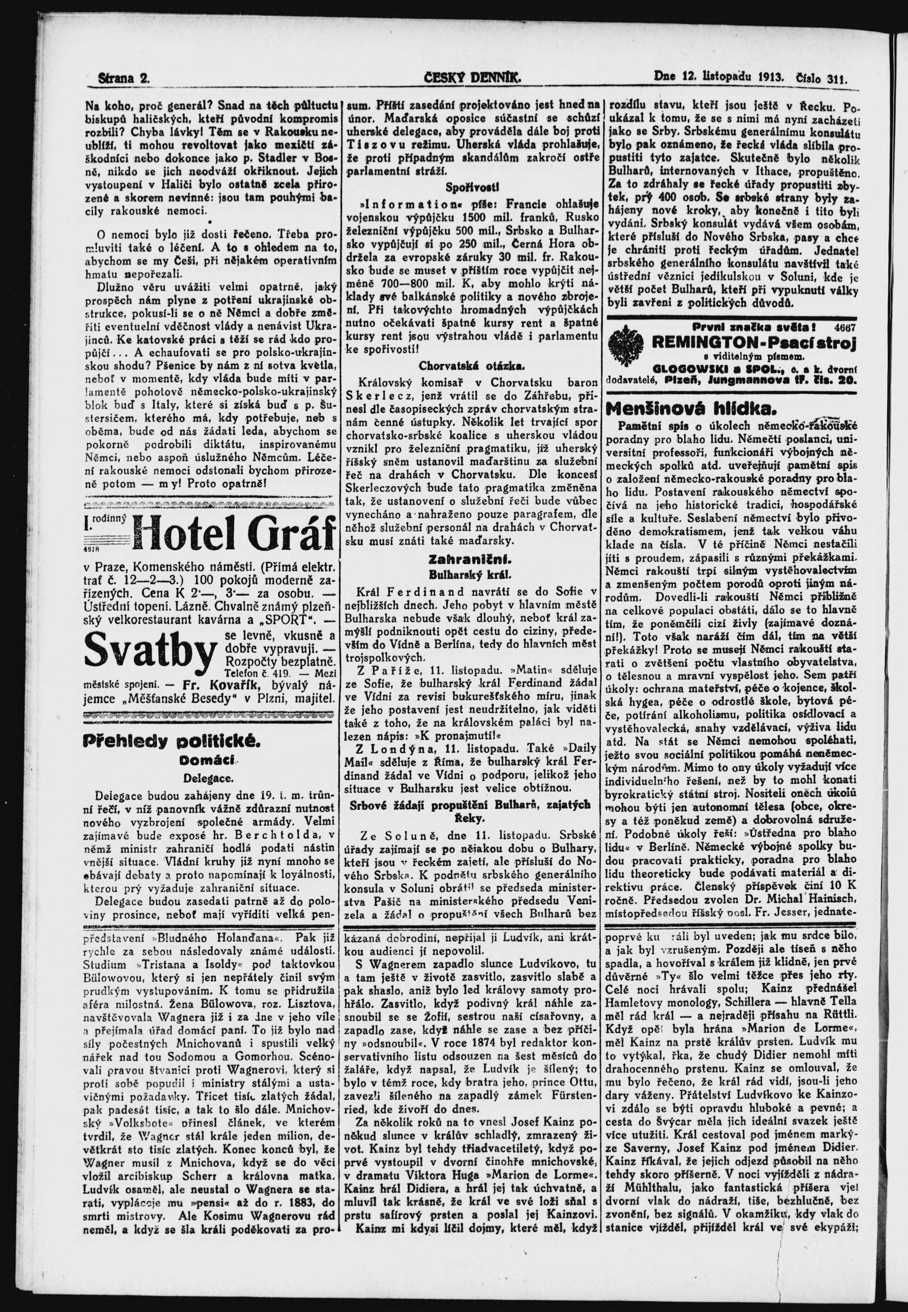 * Datum vydání výtisku: 12.11.1913 Číslo výtisku: 311