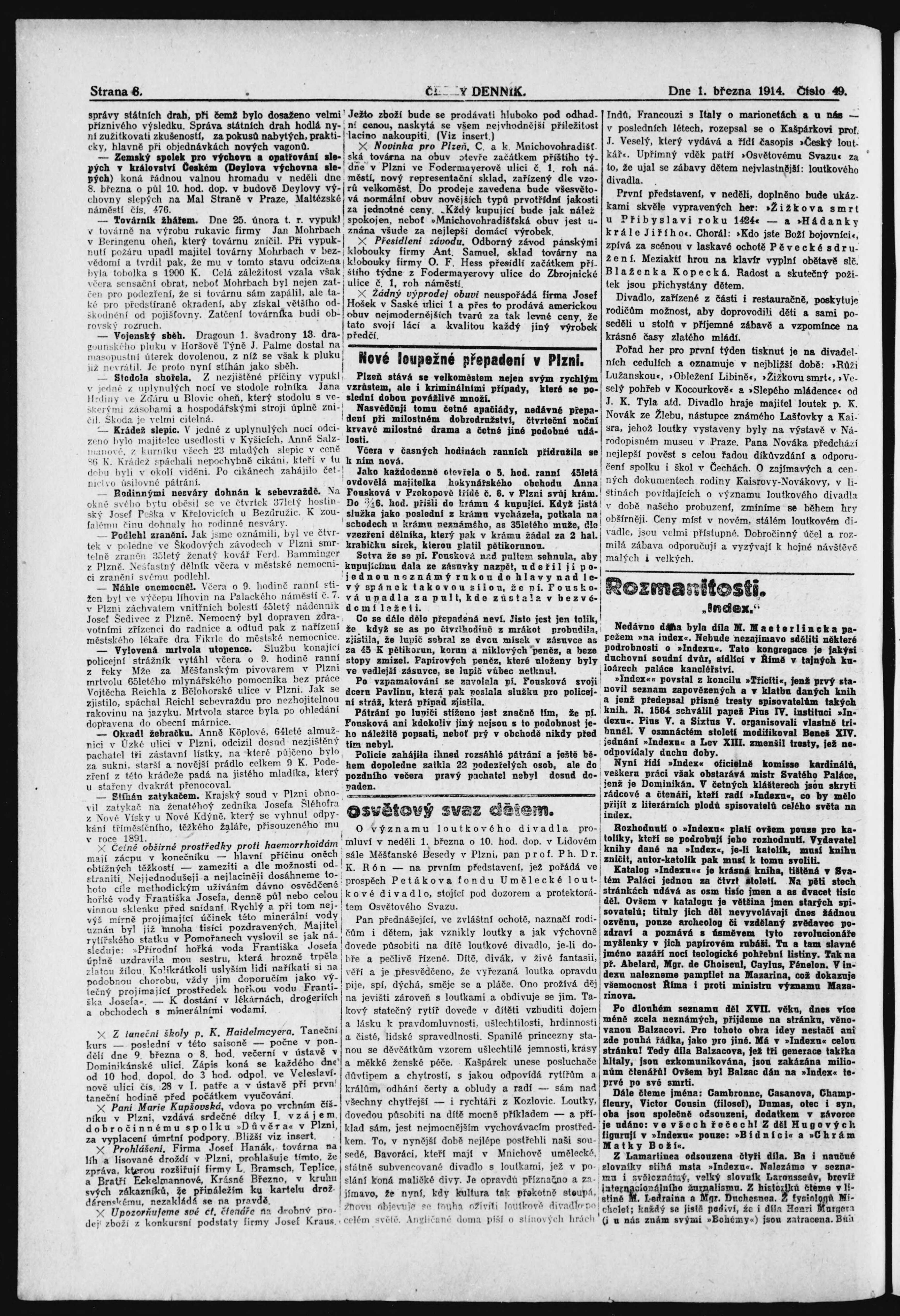 na s. 9 chybně uvedené č. 46 (49) a datum vydání 26.2.1914 (1.3.1914)