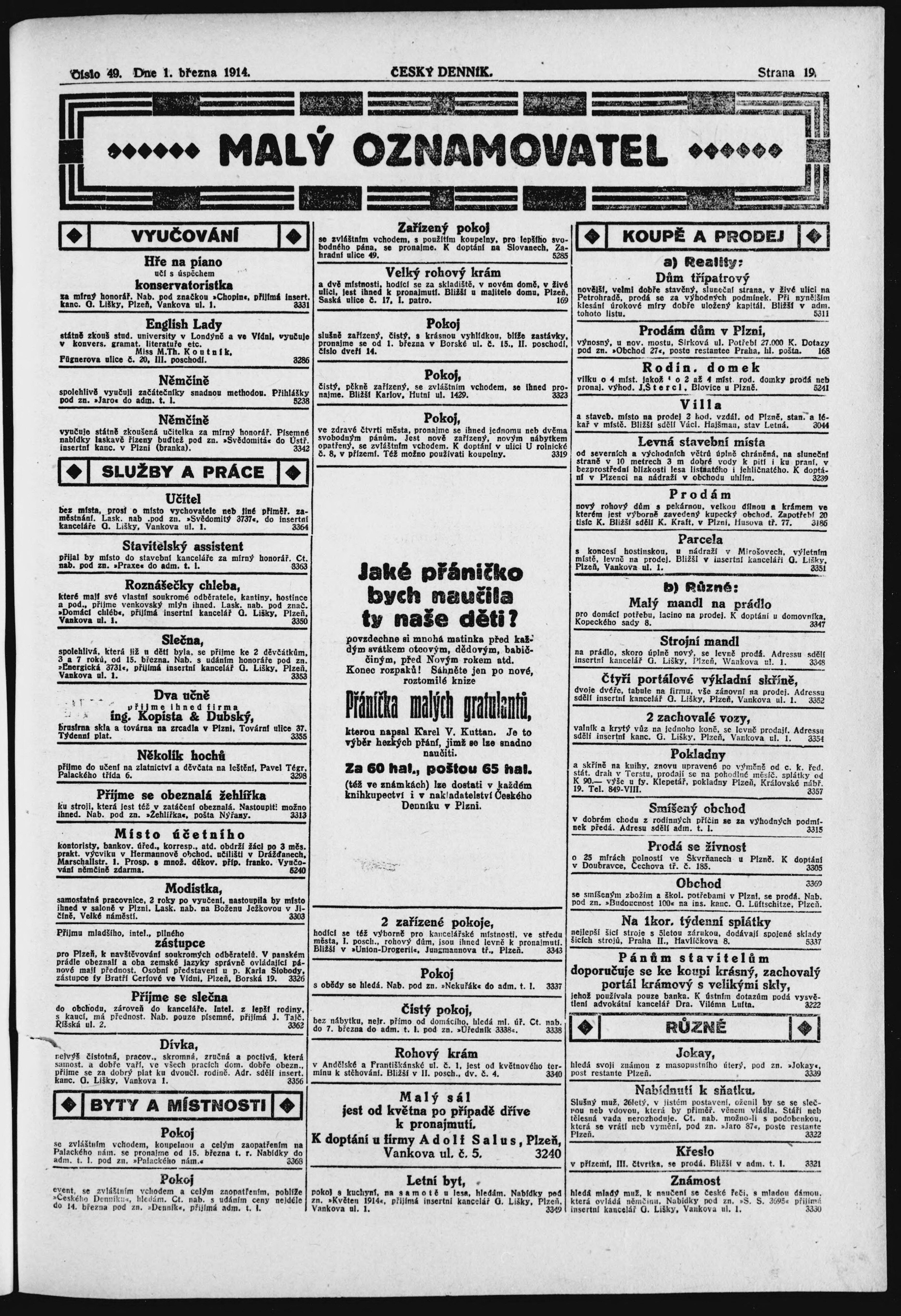 na s. 9 chybně uvedené č. 46 (49) a datum vydání 26.2.1914 (1.3.1914)