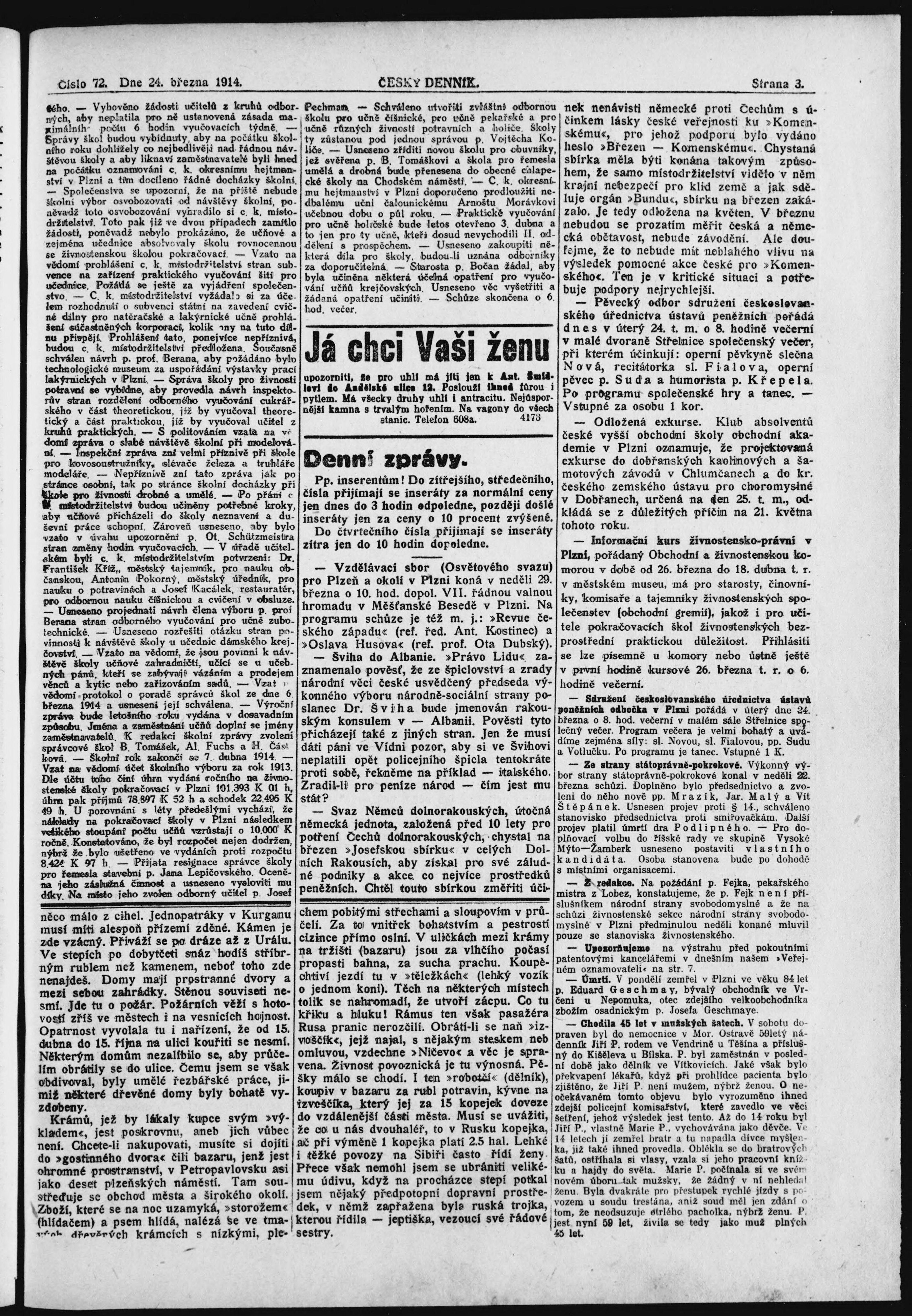 * Datum vydání výtisku: 24.3.1914 Číslo výtisku: 72