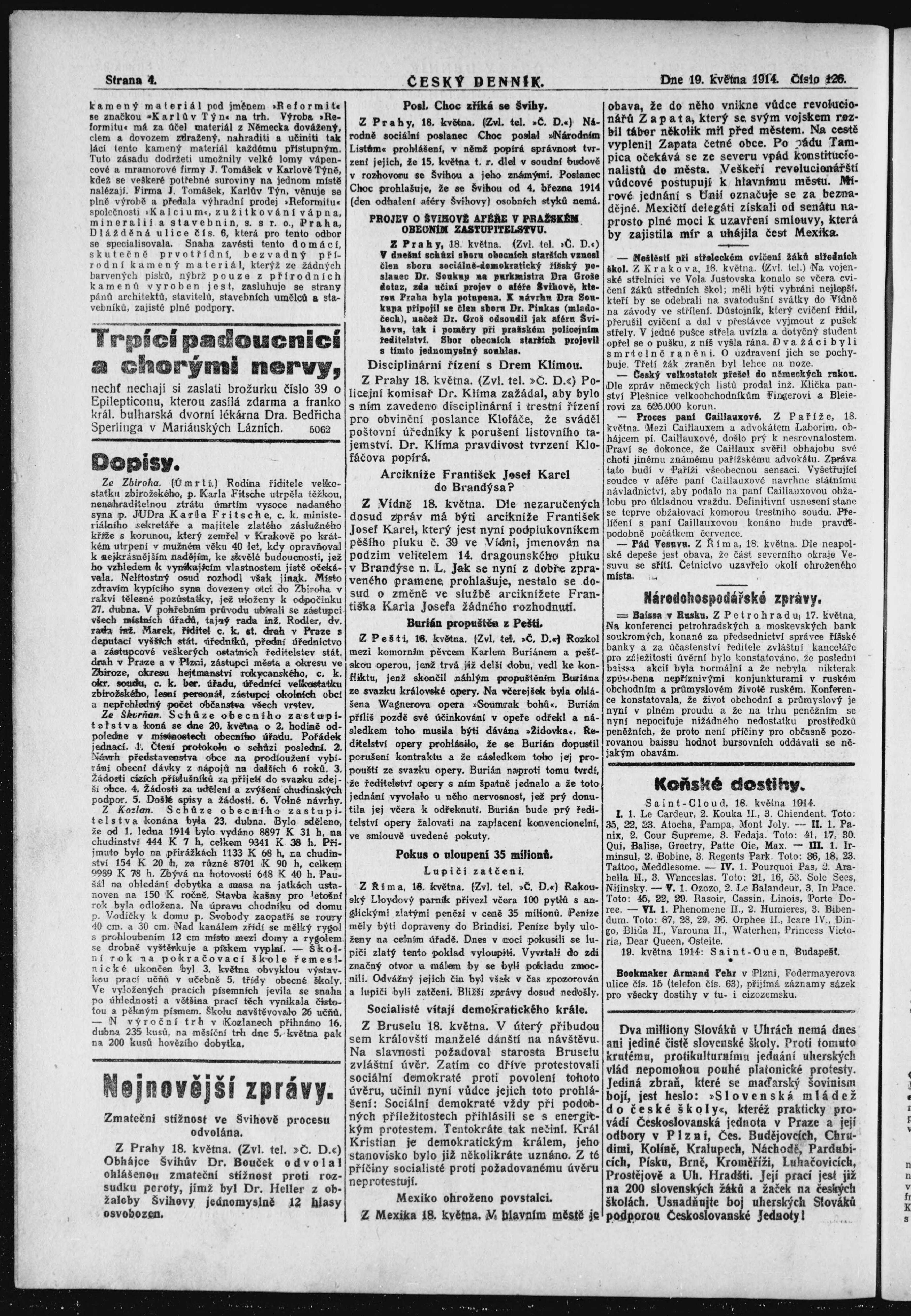 * Datum vydání výtisku: 19.5.1914 Číslo výtisku: 126