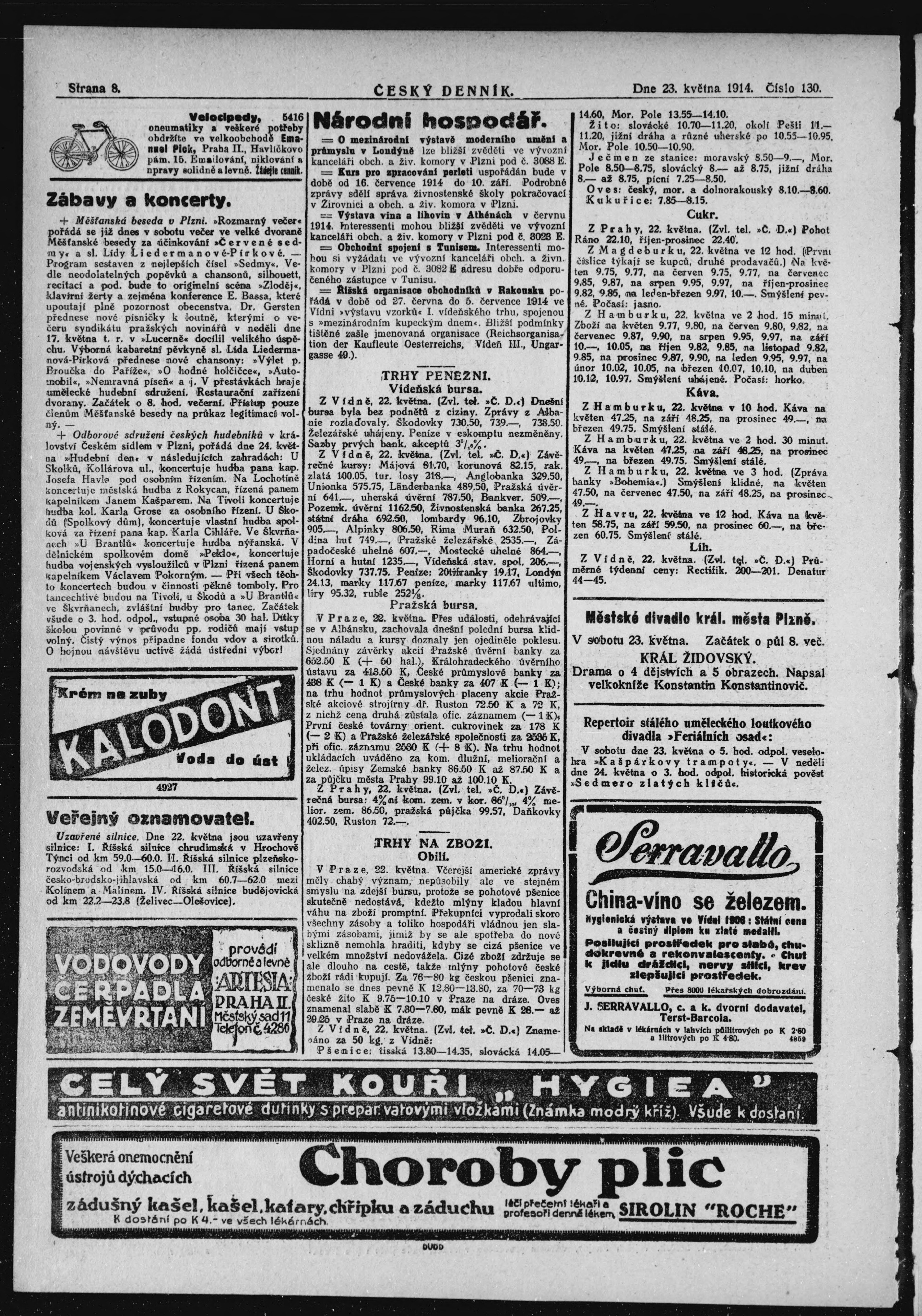 * Datum vydání výtisku: 23.5.1914 Číslo výtisku: 130