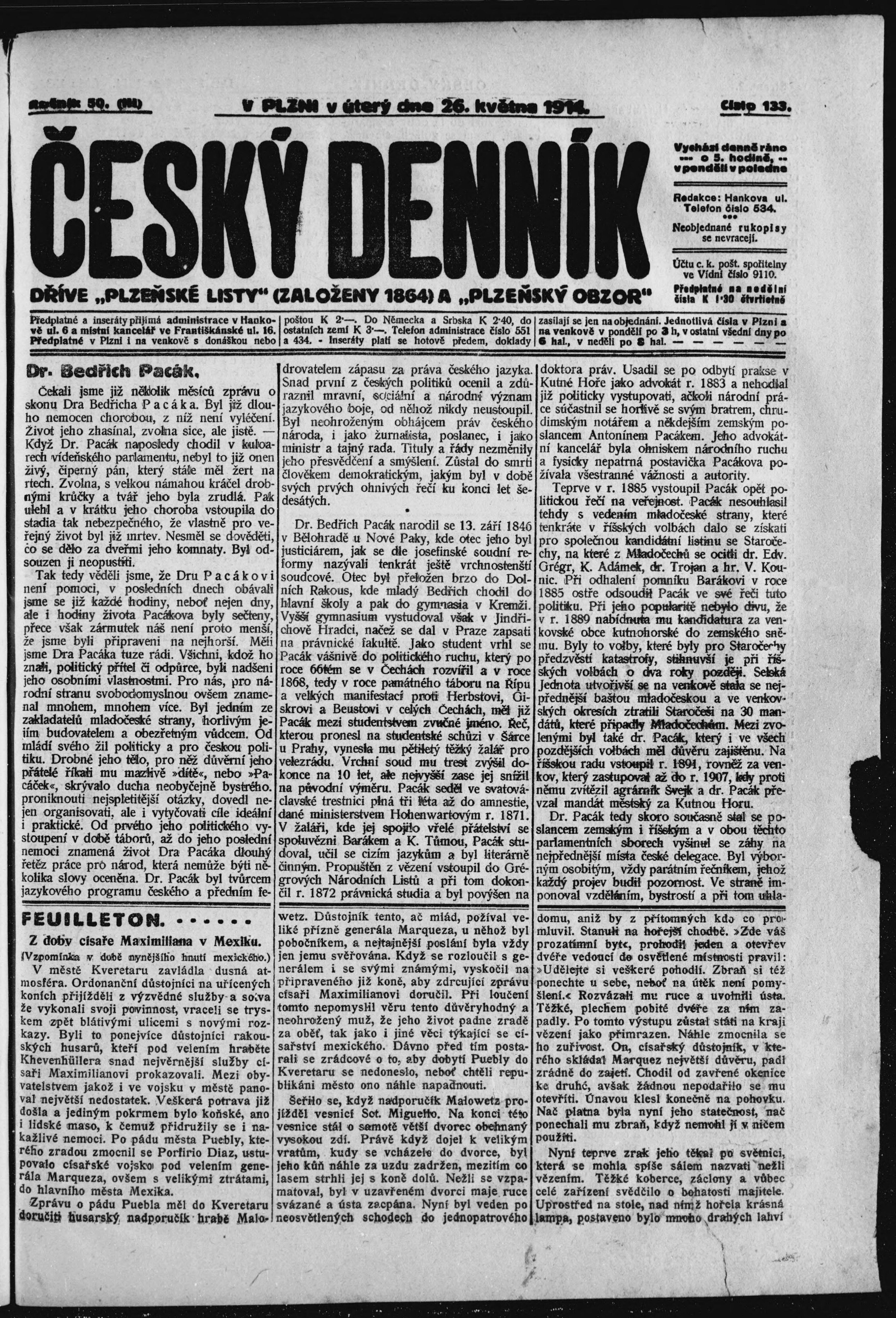 * Datum vydání výtisku: 26.5.1914 Číslo výtisku: 133