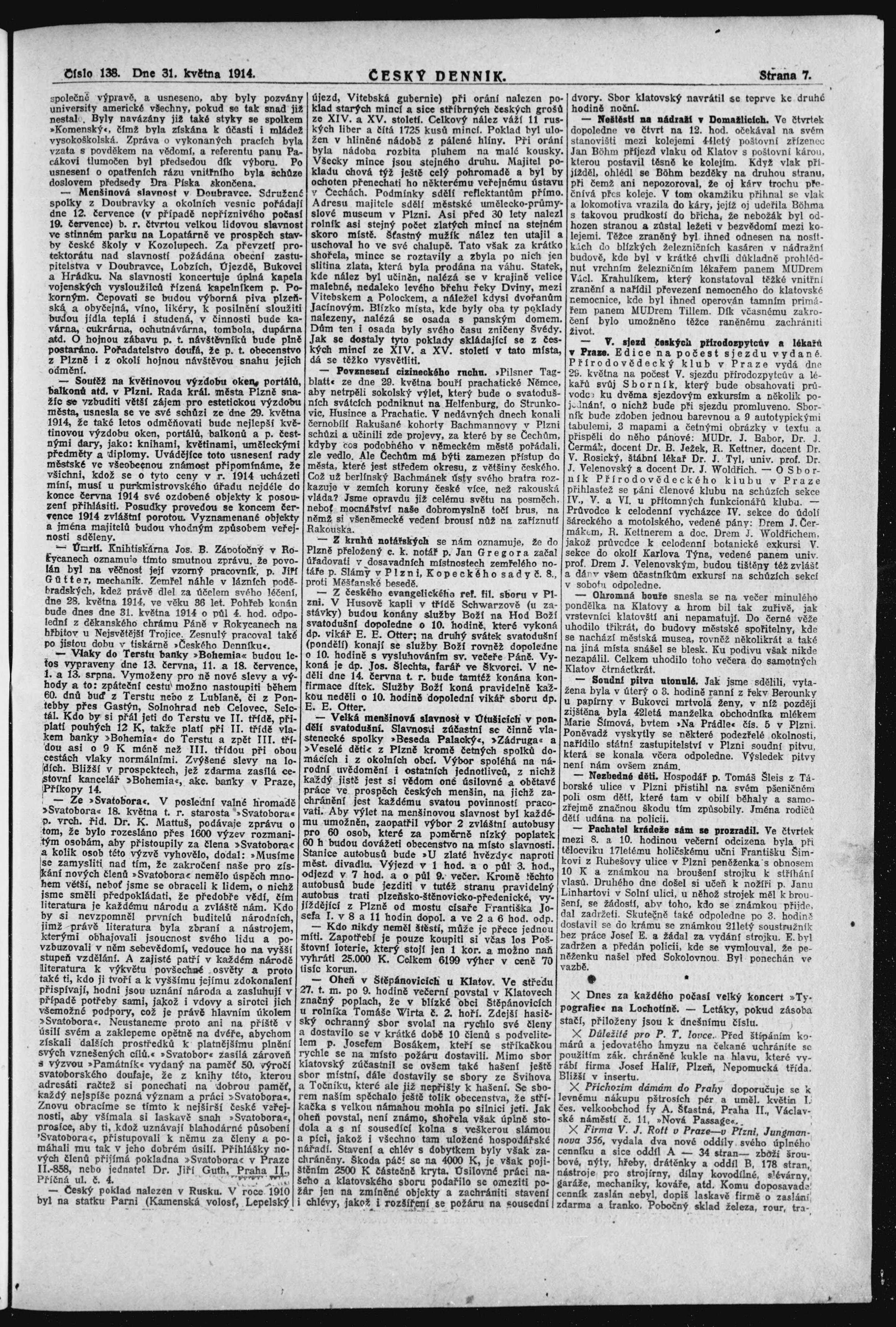 * Datum vydání výtisku: 31.5.1914 Číslo výtisku: 138 Poznámky k výtisku: na s. 19 chybně uvedený název čísla
