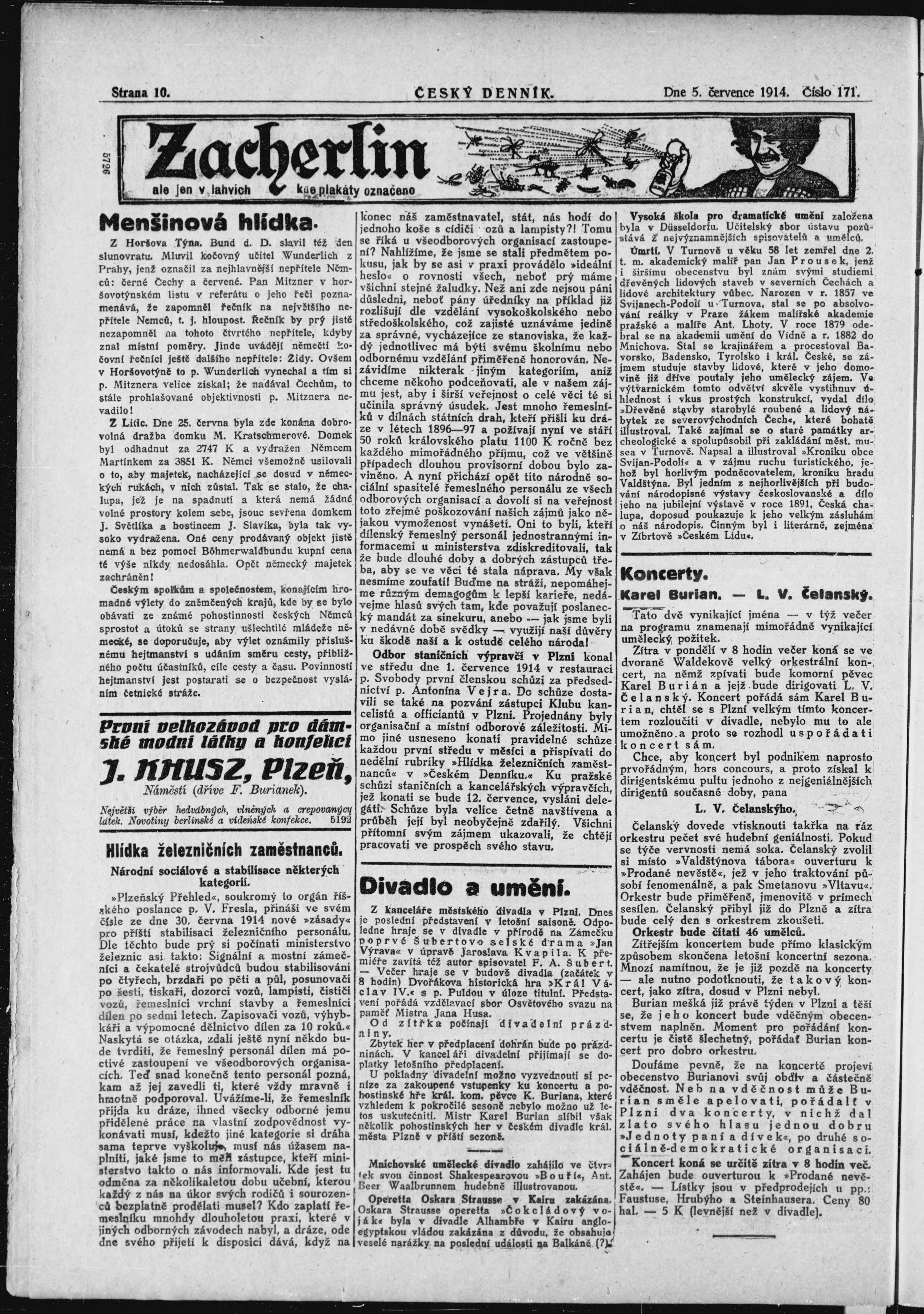 * Datum vydání výtisku: 5.7.1914 Číslo výtisku: 171