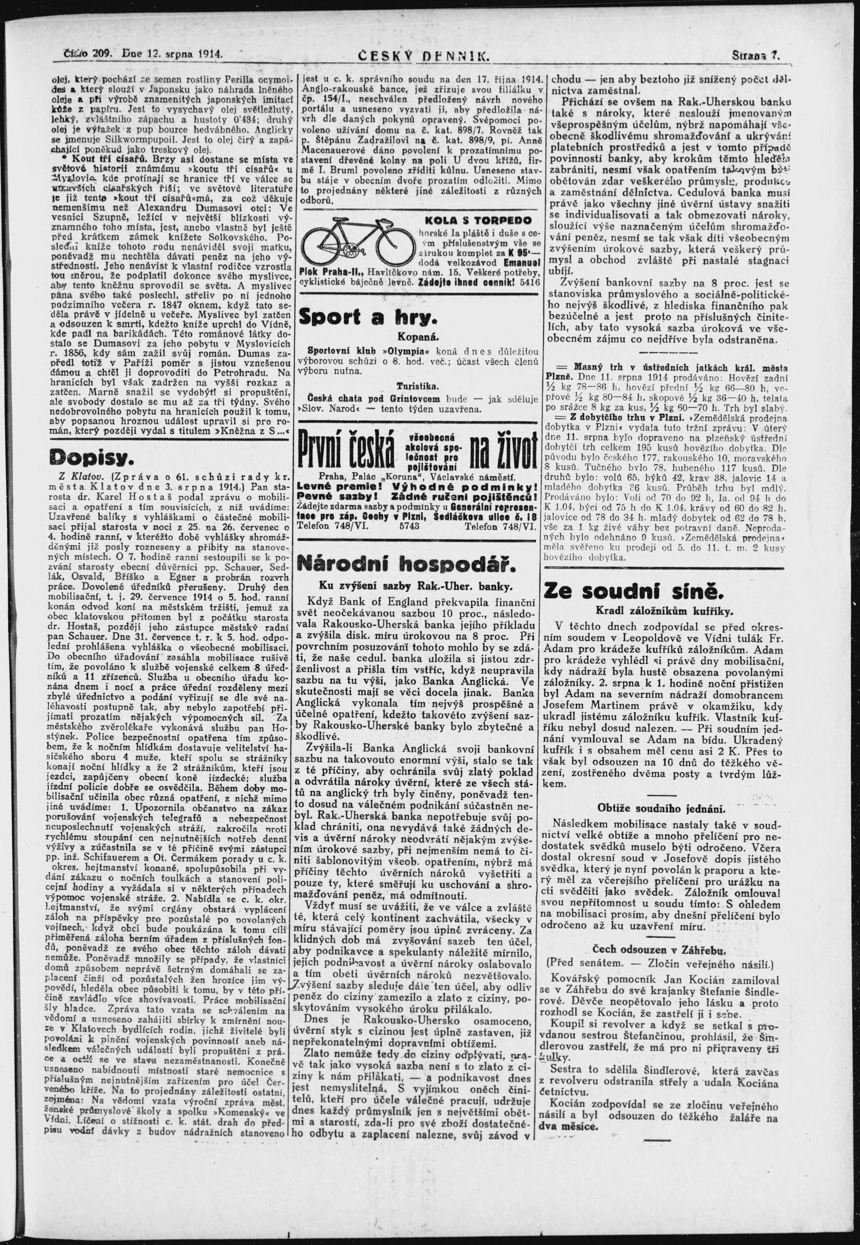 * Datum vydání výtisku: 12.8.1914 Číslo výtisku: 209