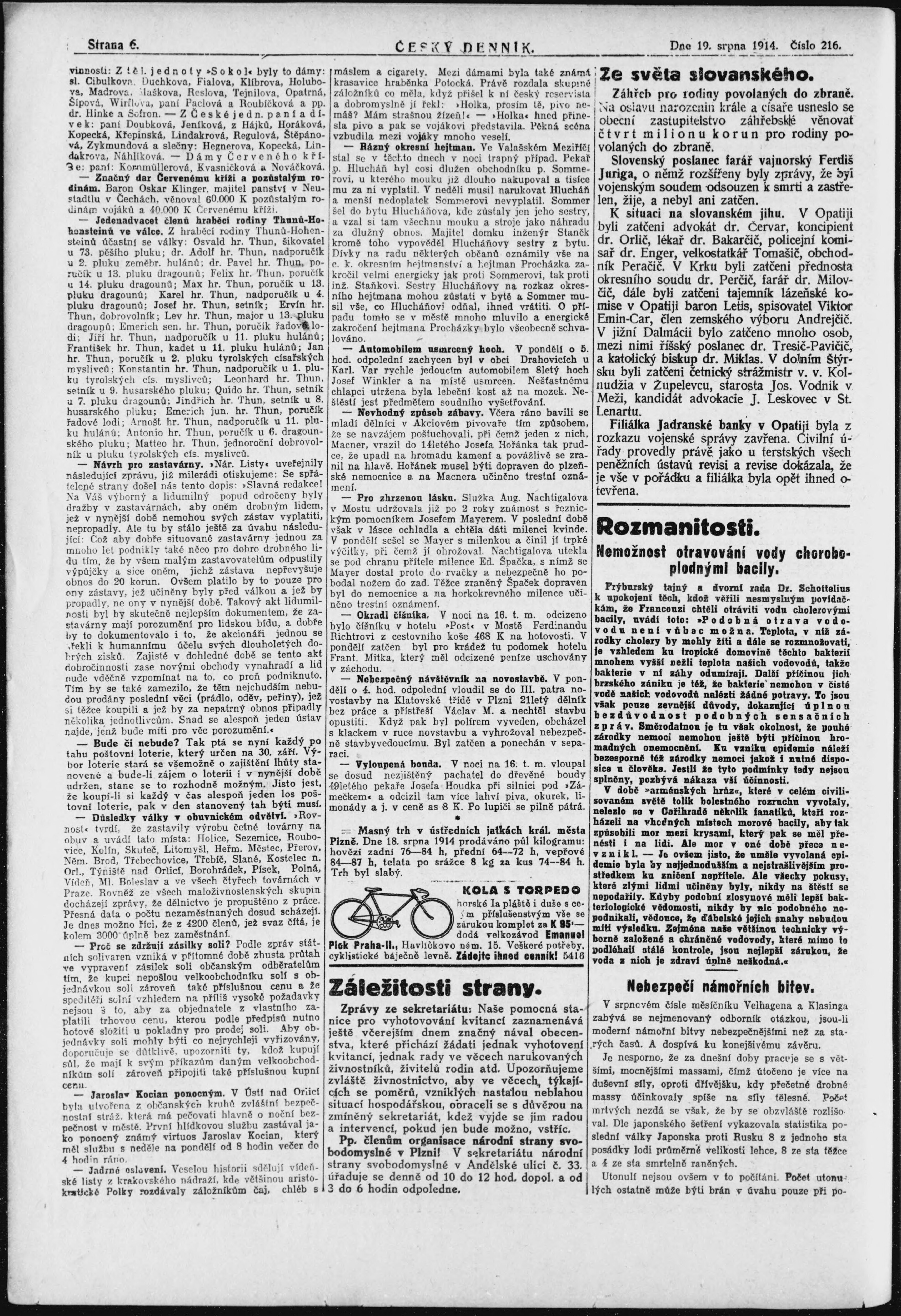 * Datum vydání výtisku: 19.8.1914 Číslo výtisku: 216