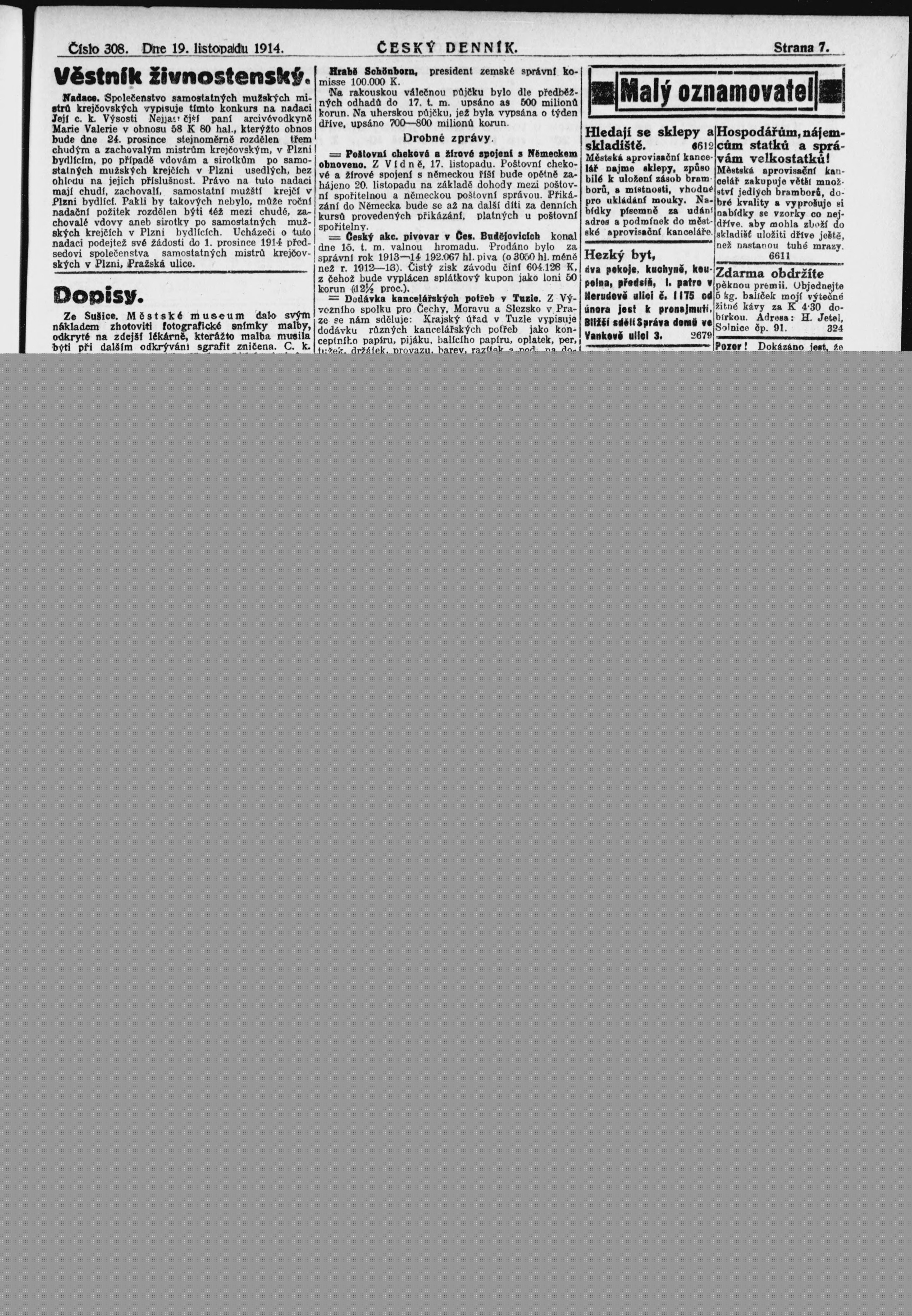 * Datum vydání výtisku: 19.11.1914 Číslo výtisku: 308