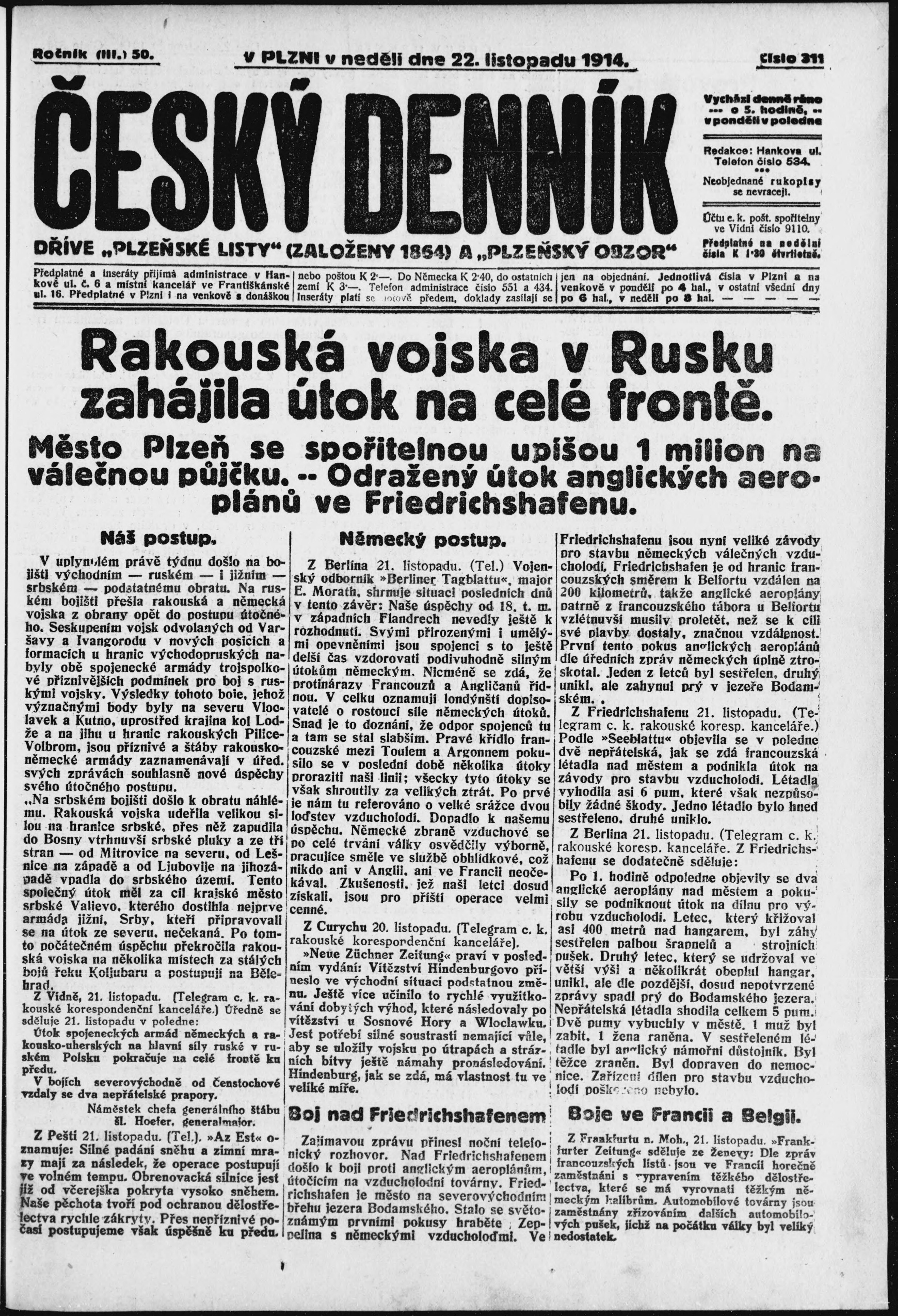 * Datum vydání výtisku: 22.11.1914 Číslo výtisku: 311