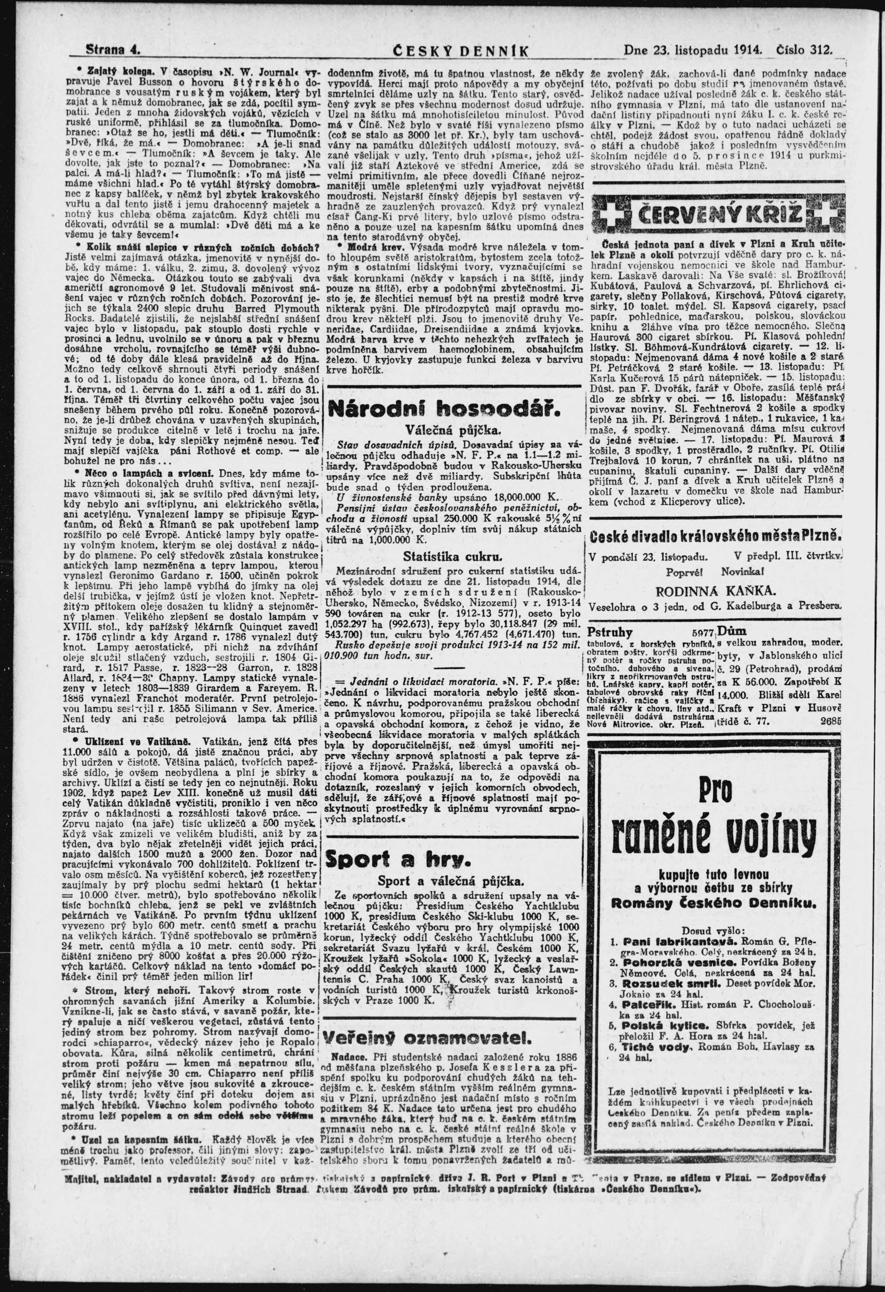 * Datum vydání výtisku: 23.11.1914 Číslo výtisku: 312