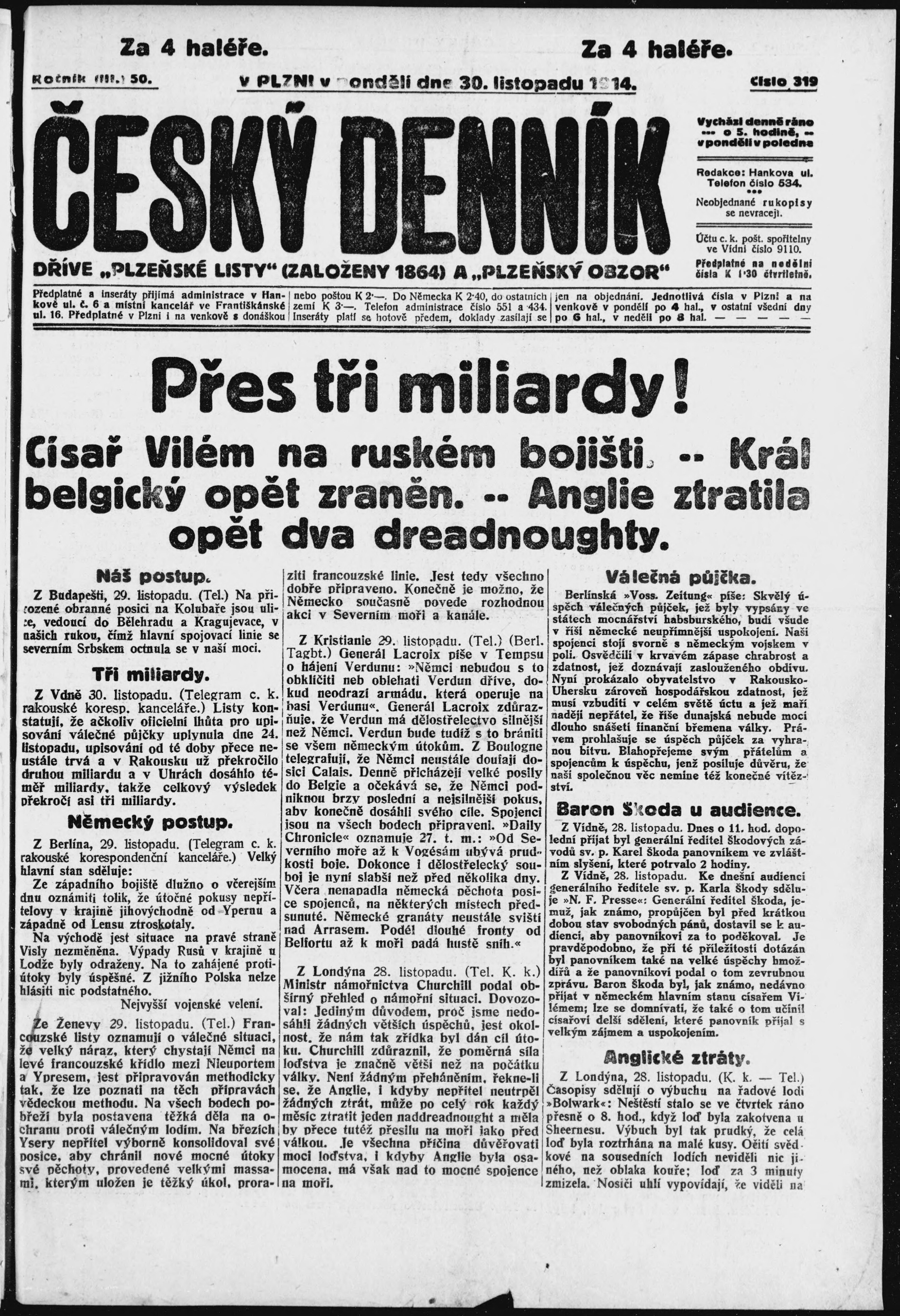* Datum vydání výtisku: 30.11.1914 Číslo výtisku: 319