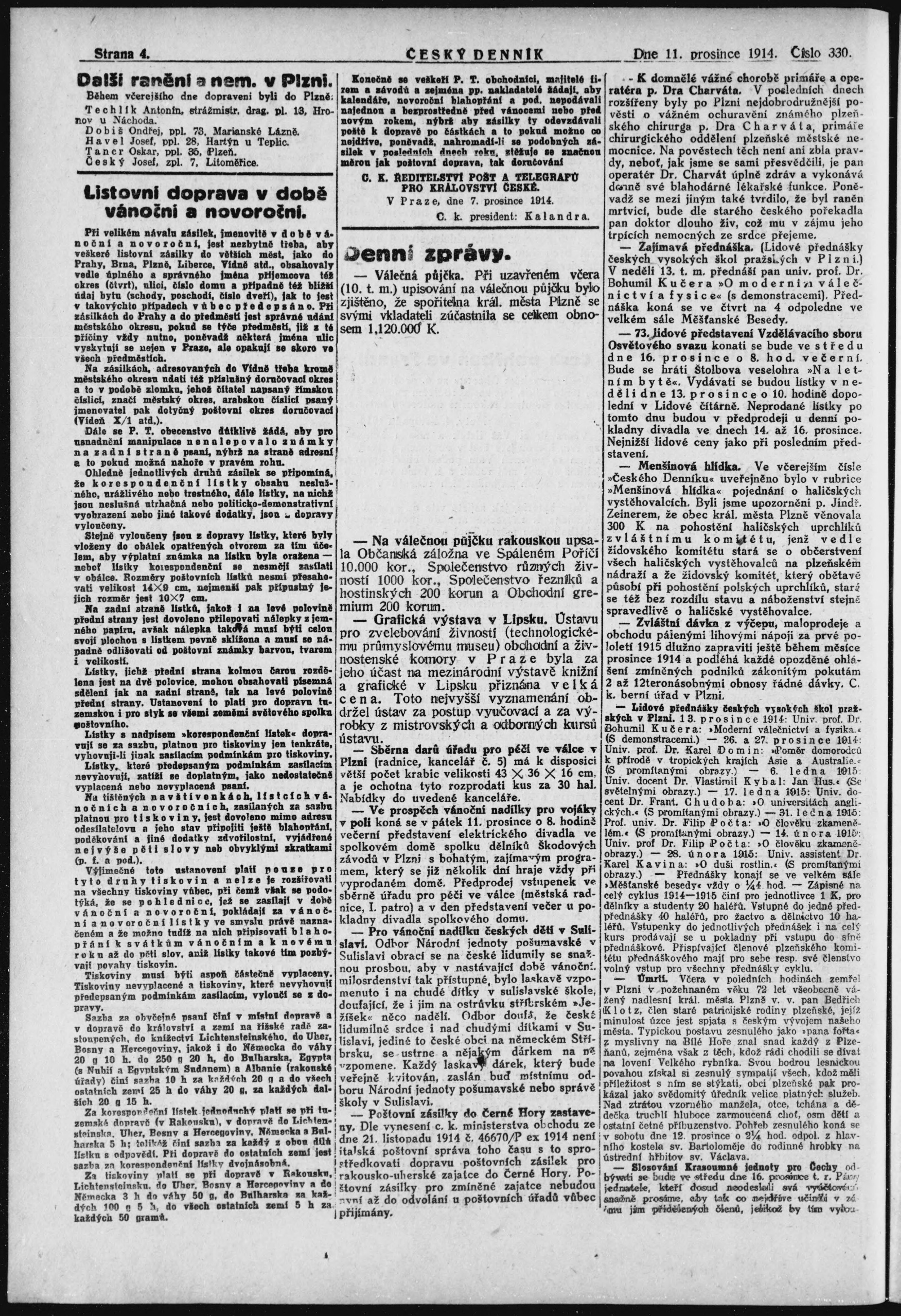 * Datum vydání výtisku: 11.12.1914 Číslo výtisku: 330