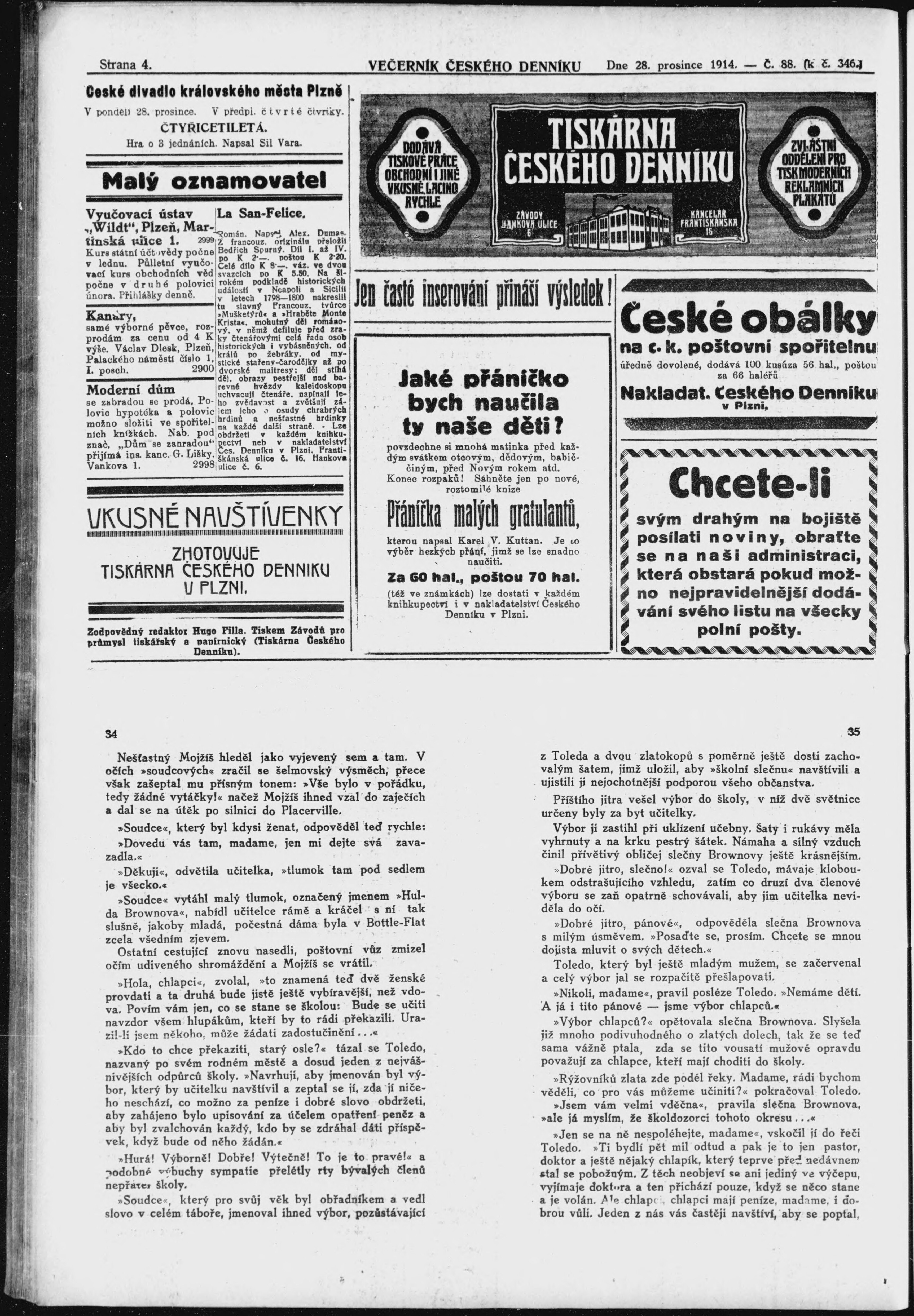 * Datum vydání výtisku: 28.12.1914 Číslo výtisku: 88 Poznámky k výtisku: večerní vydání;