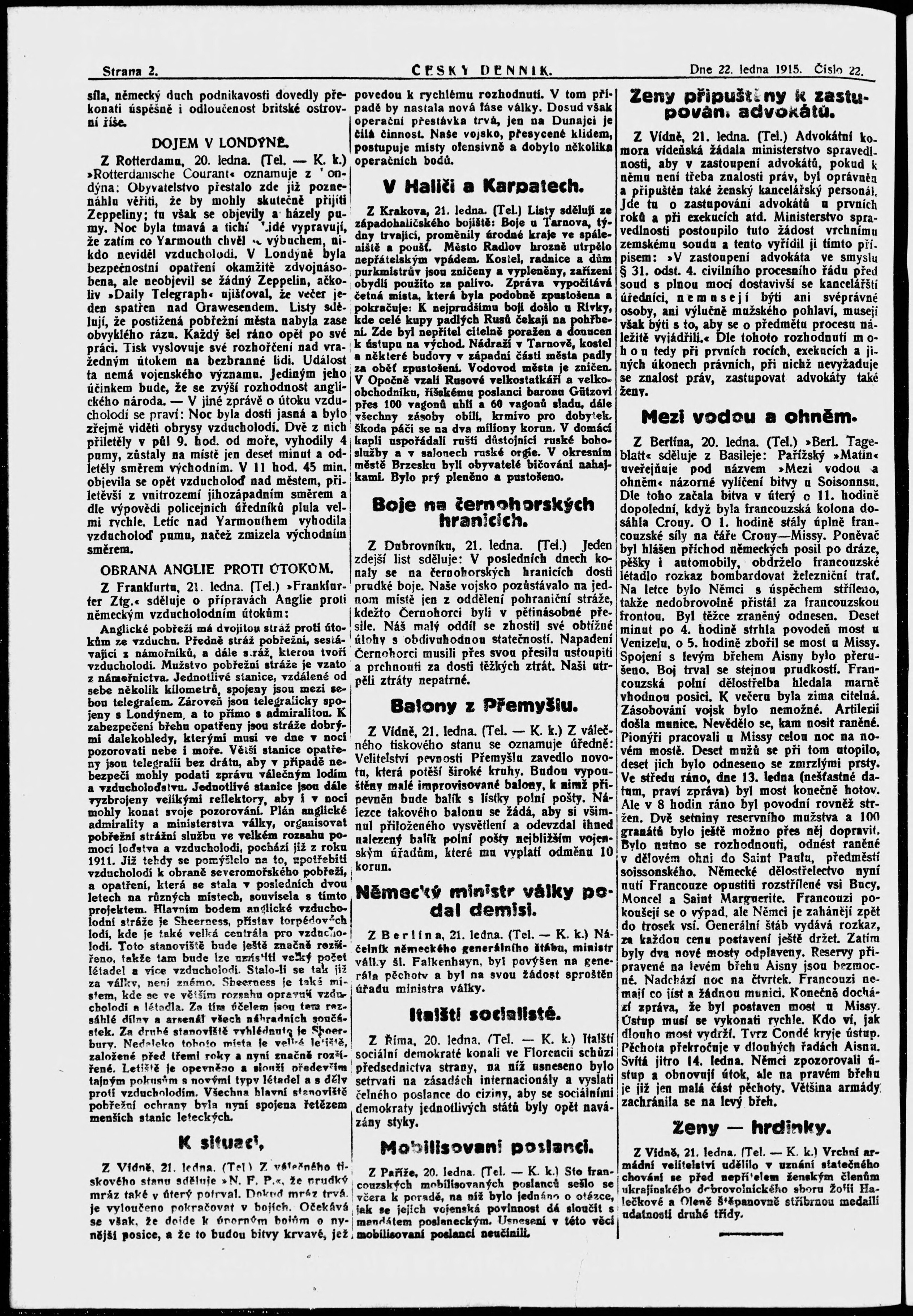 * Datum vydání výtisku: 22.1.1915 Číslo výtisku: 22