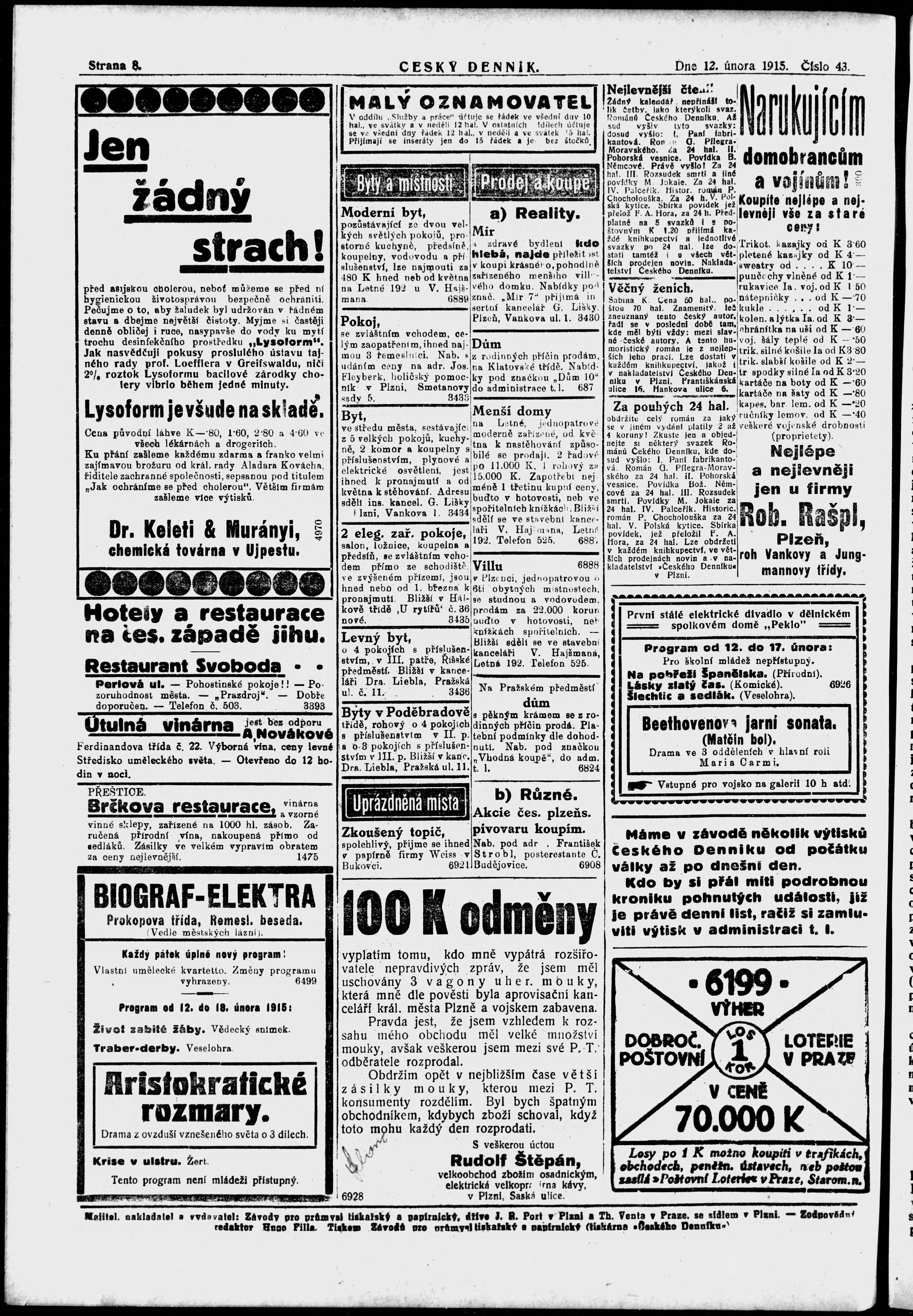 * Datum vydání výtisku: 12.2.1915 Číslo výtisku: 43