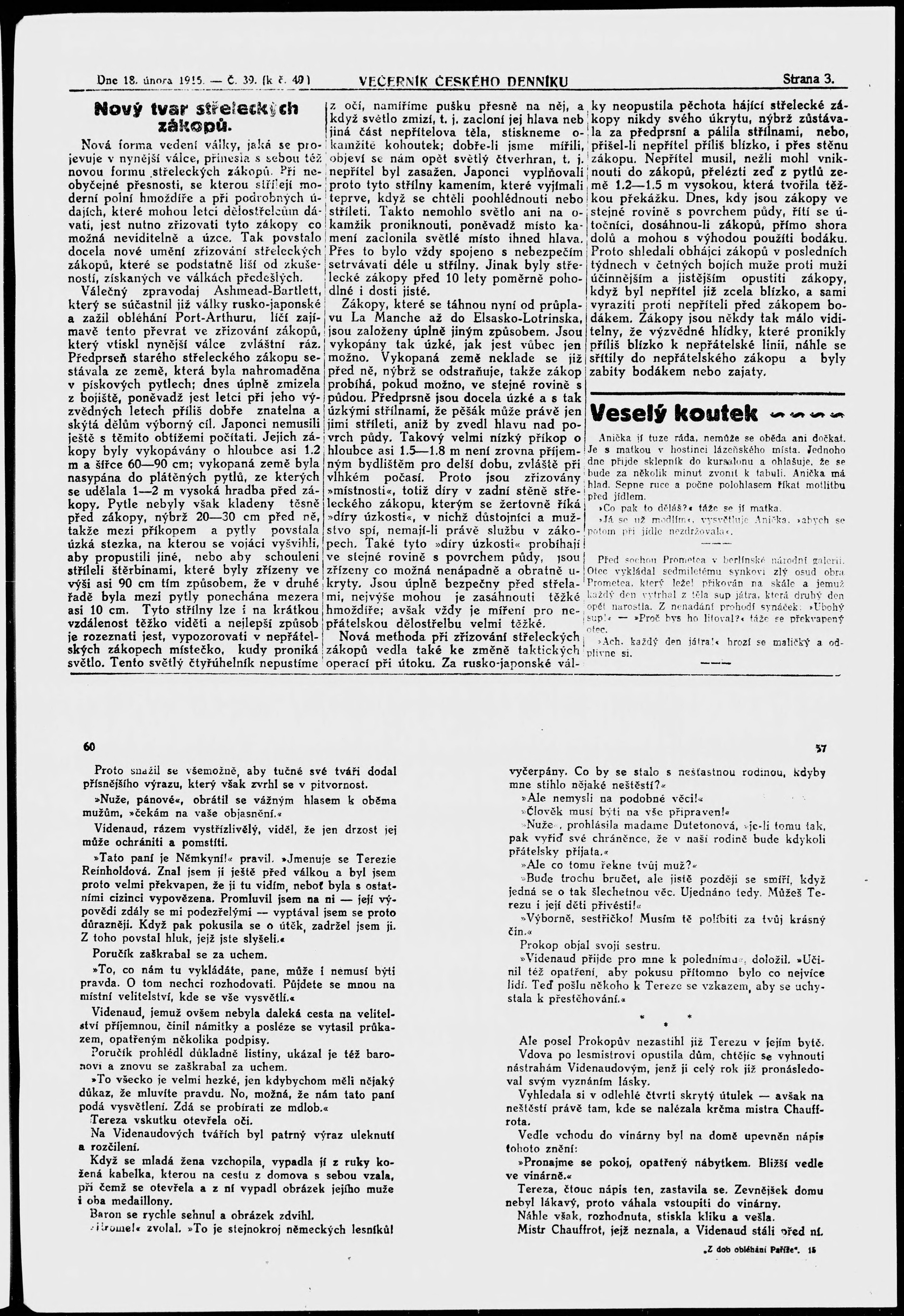 * Datum vydání výtisku: 18.2.1915 Číslo výtisku: 39 Poznámky k výtisku: večerní vydání;