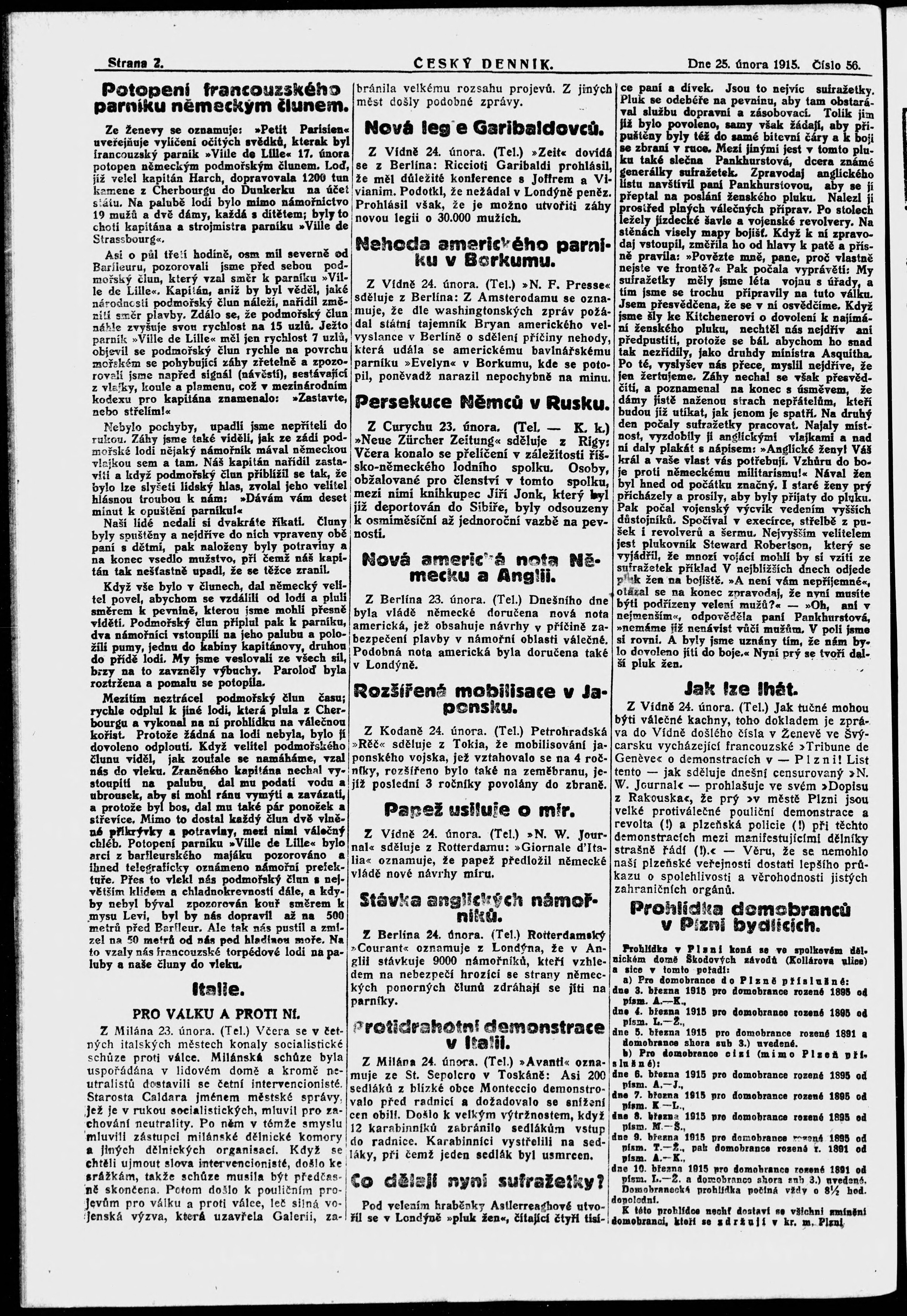* Datum vydání výtisku: 25.2.1915 Číslo výtisku: 56