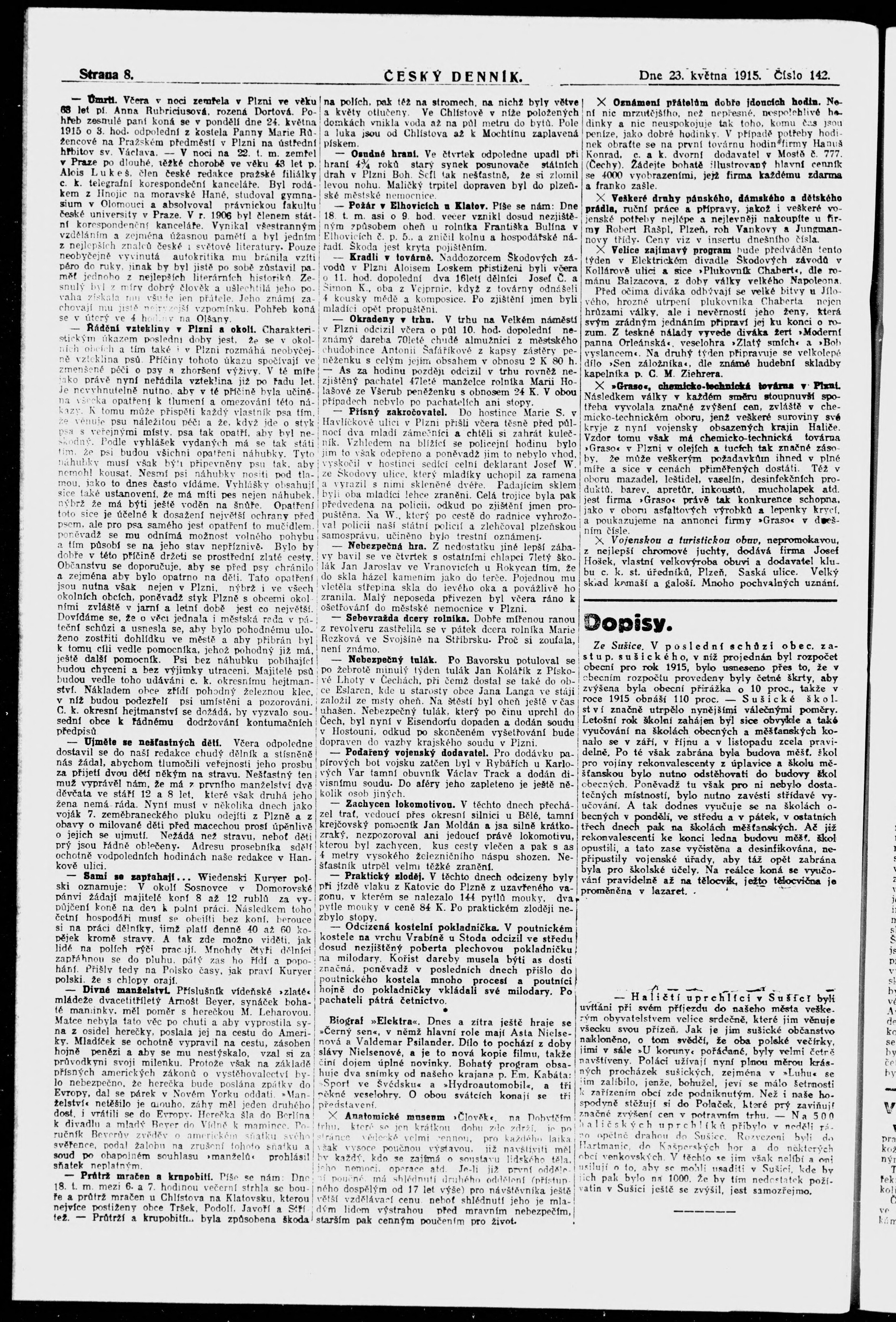 * Datum vydání výtisku: 23.5.1915 Číslo výtisku: 142