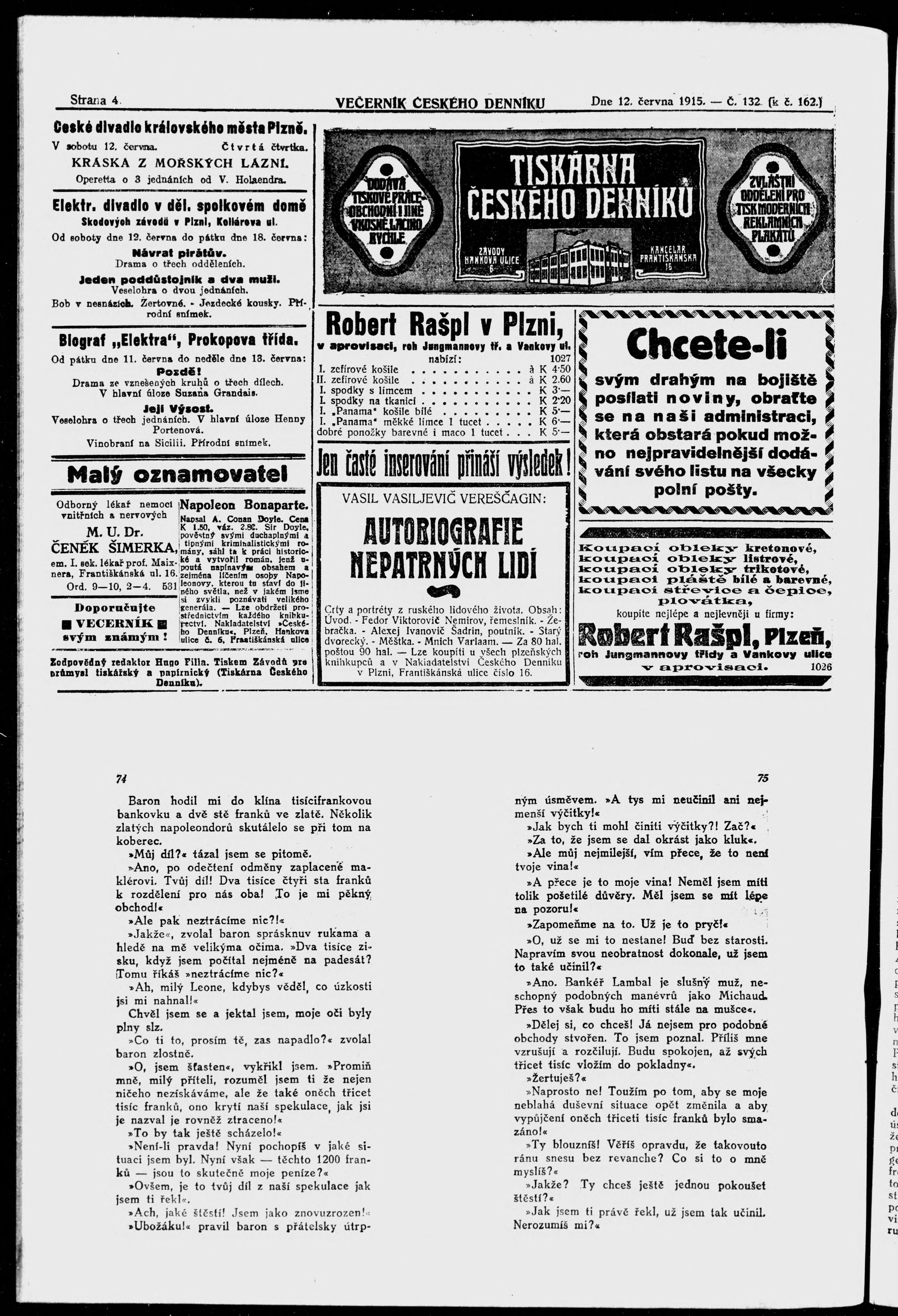 * Datum vydání výtisku: 12.6.1915 Číslo výtisku: 132 Poznámky k výtisku: večerní vydání;