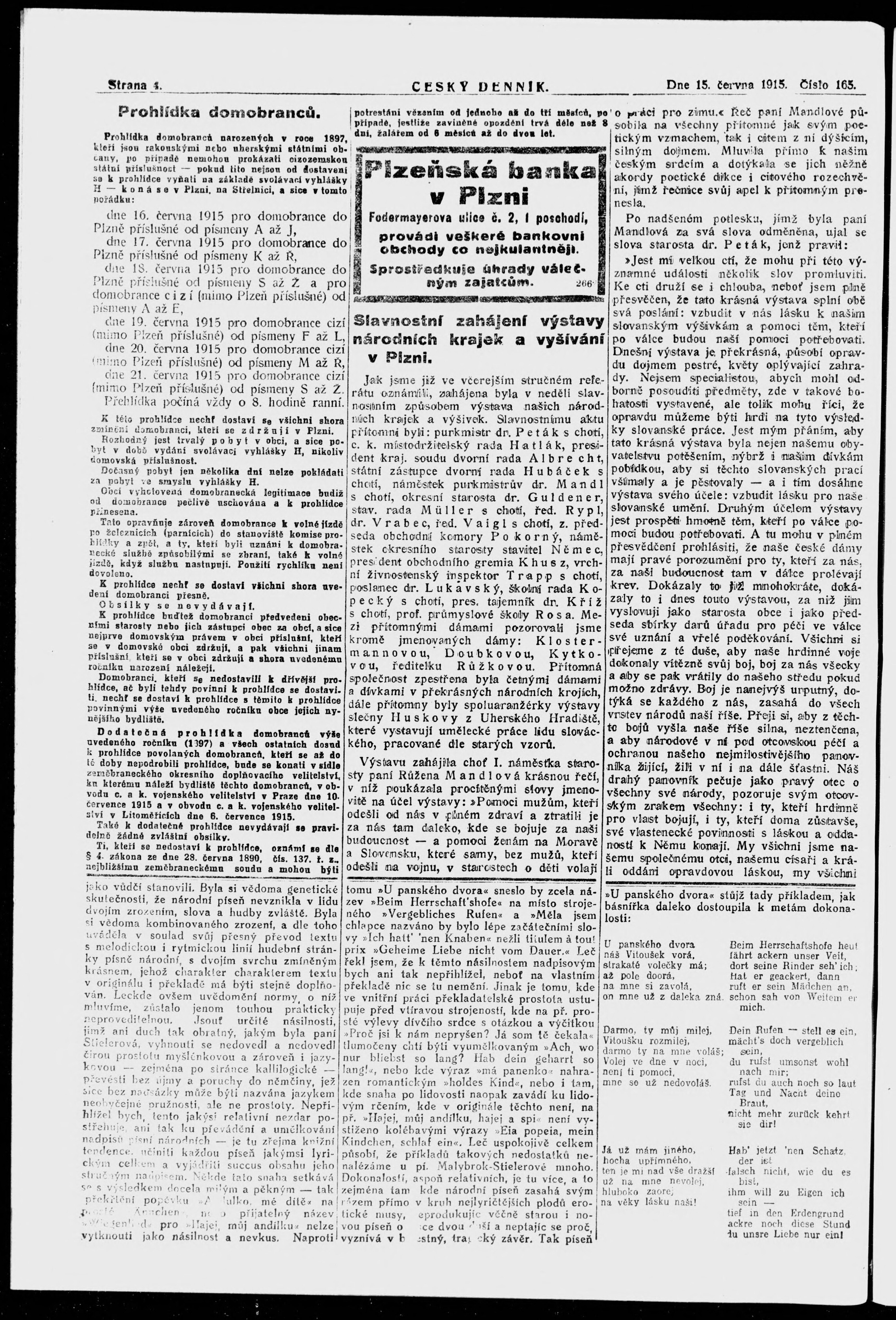 * Datum vydání výtisku: 15.6.1915 Číslo výtisku: 165