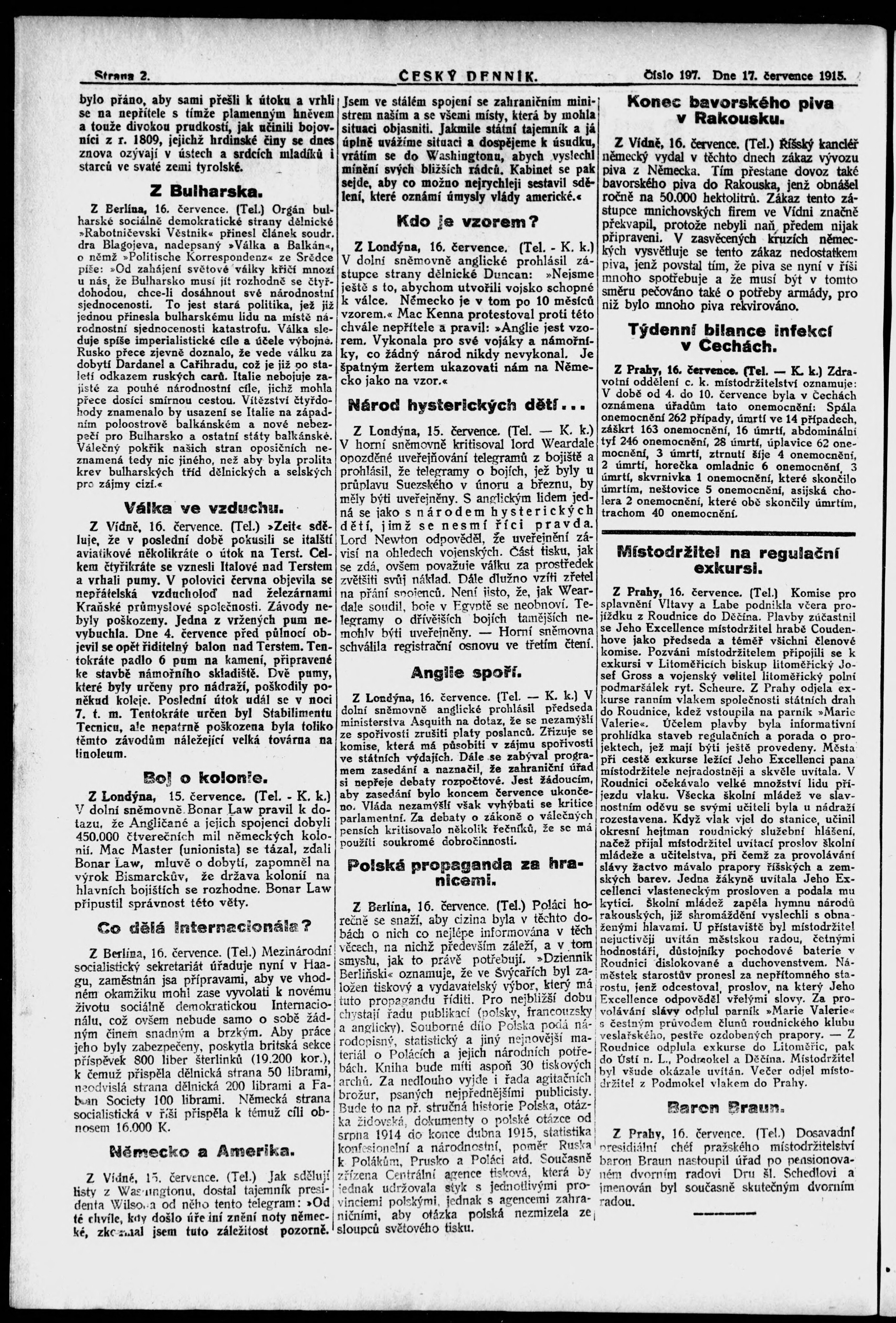 * Datum vydání výtisku: 17.7.1915 Číslo výtisku: 197
