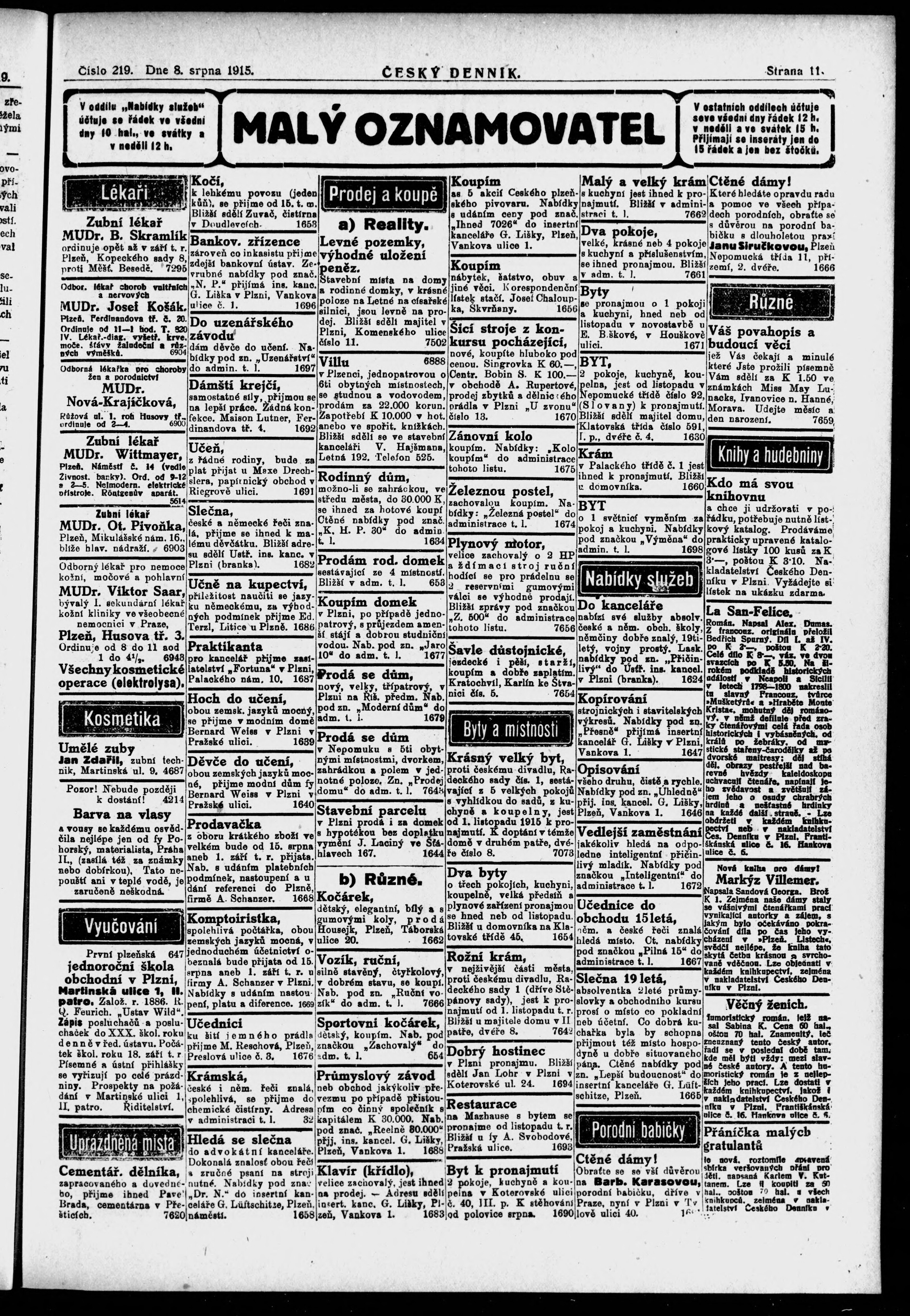 * Datum vydání výtisku: 8.8.1915 Číslo výtisku: 219