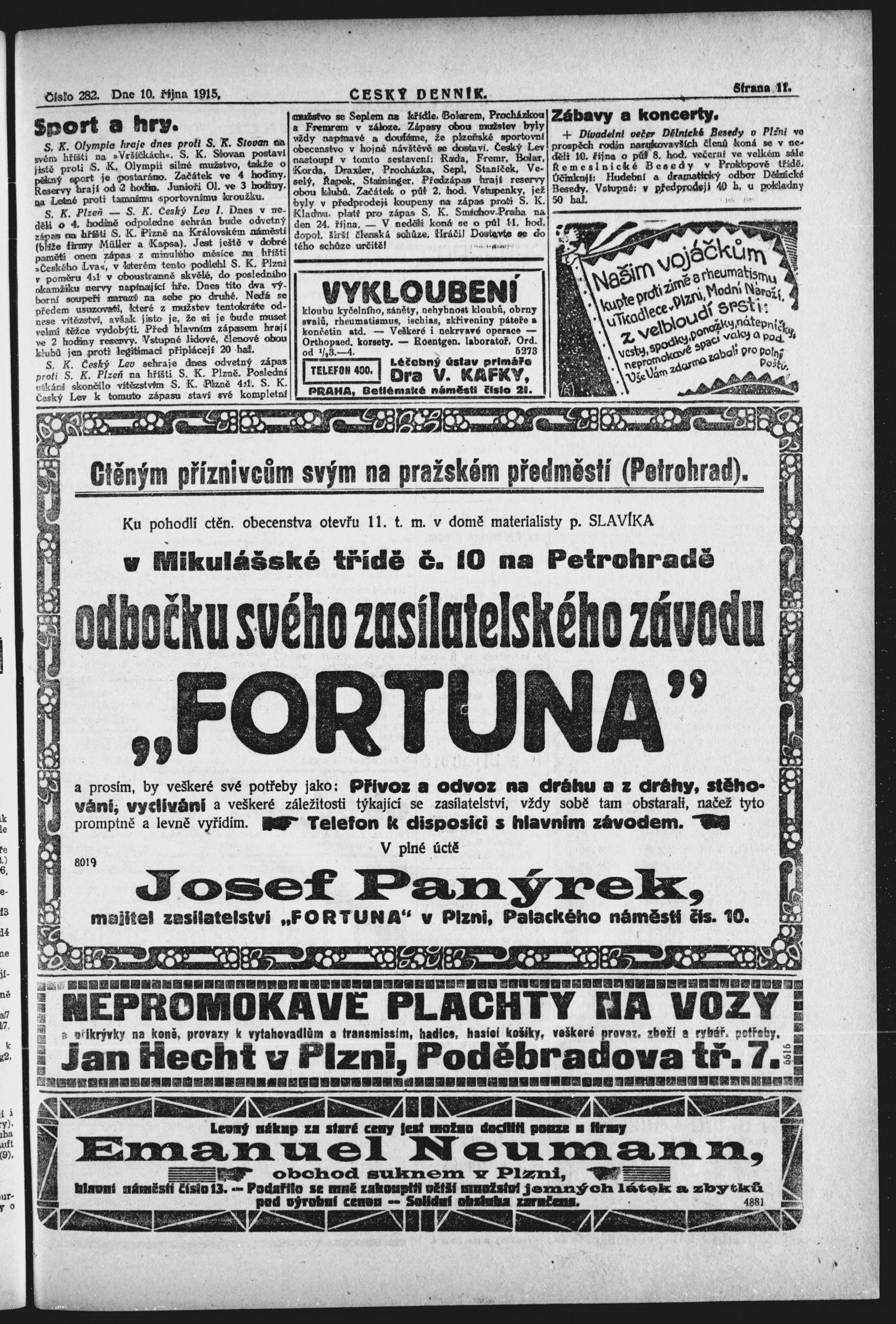 * Datum vydání výtisku: 10.10.1915 Číslo výtisku: 282