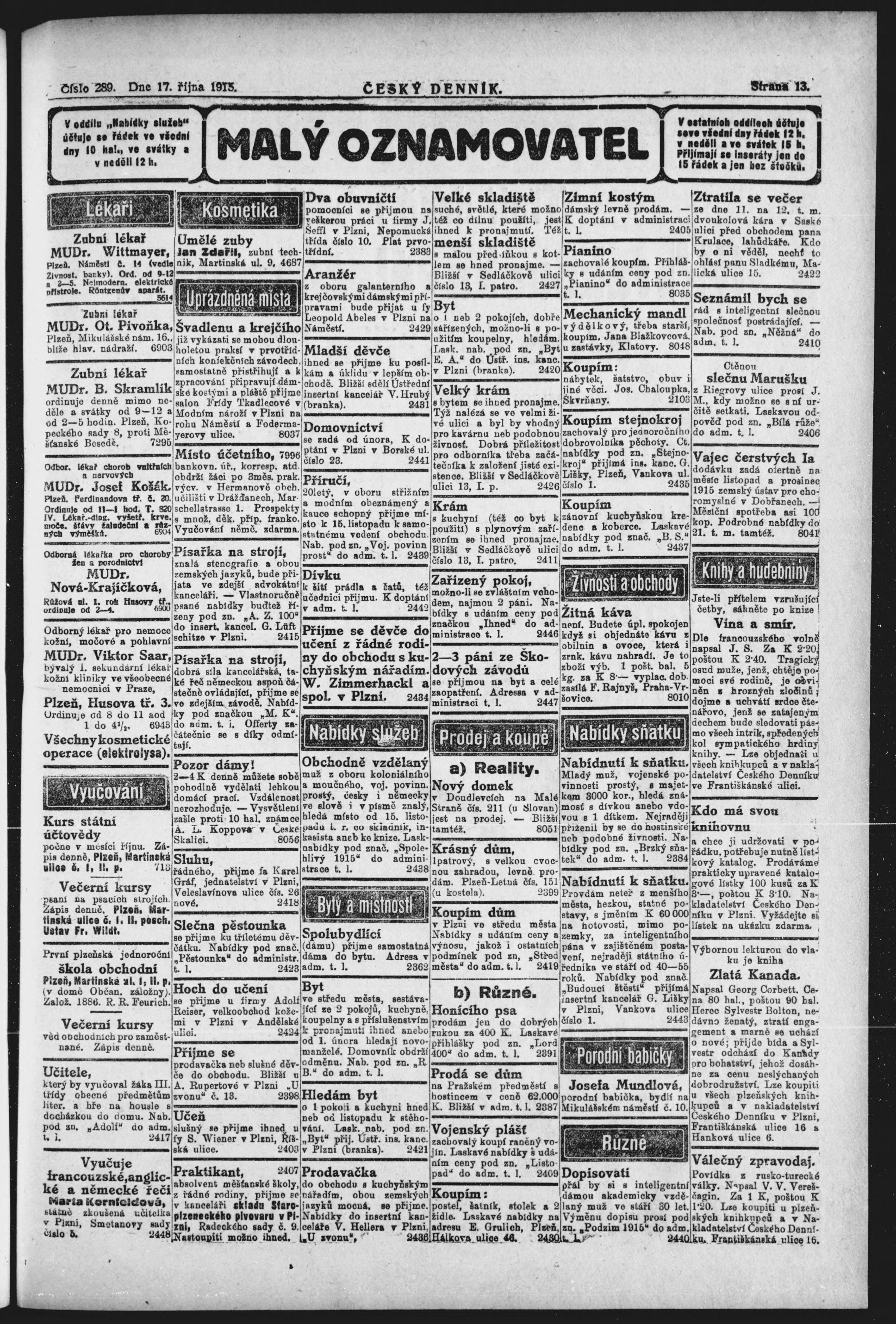 * Datum vydání výtisku: 17.10.1915 Číslo výtisku: 289