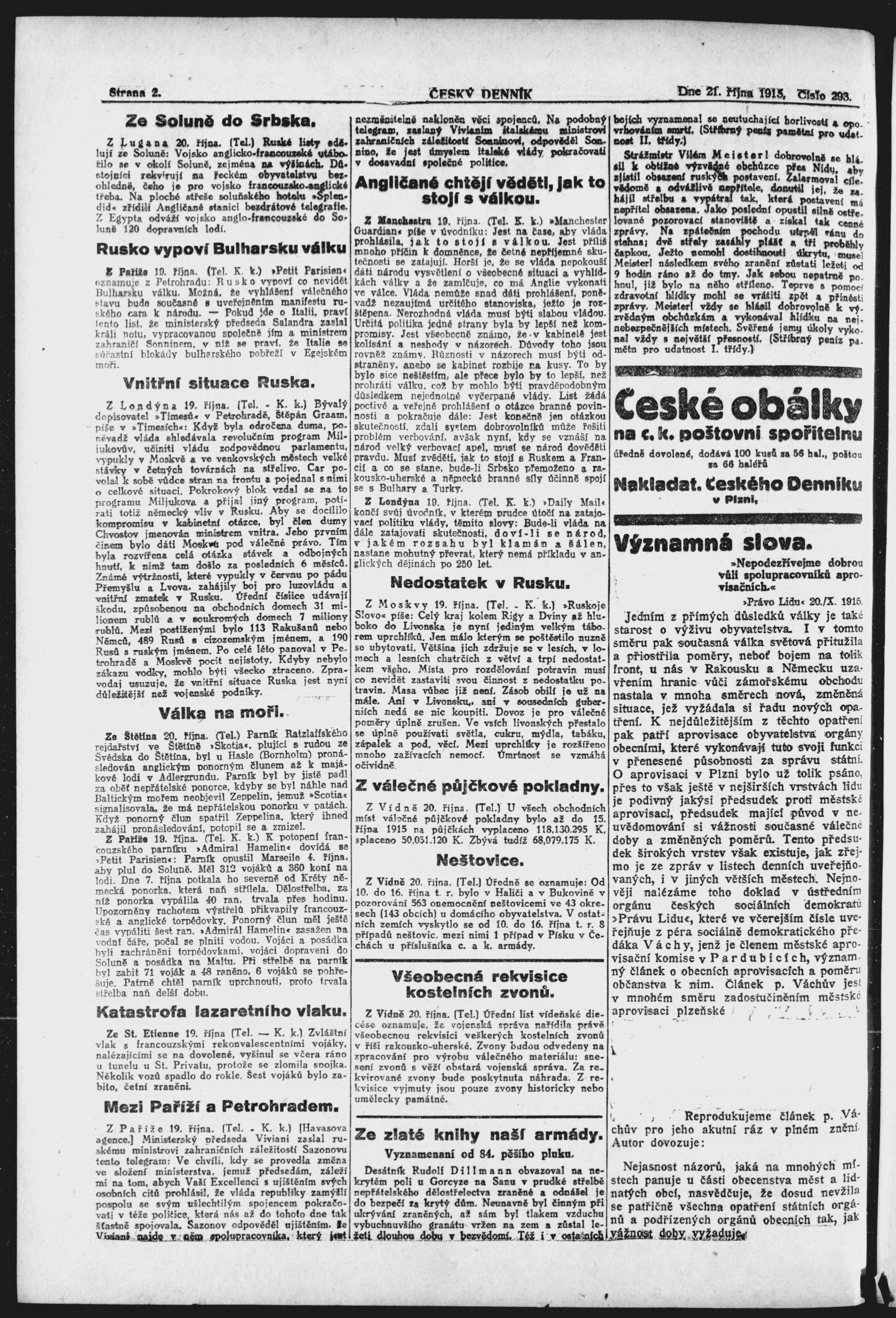 * Datum vydání výtisku: 21.10.1915 Číslo výtisku: 293