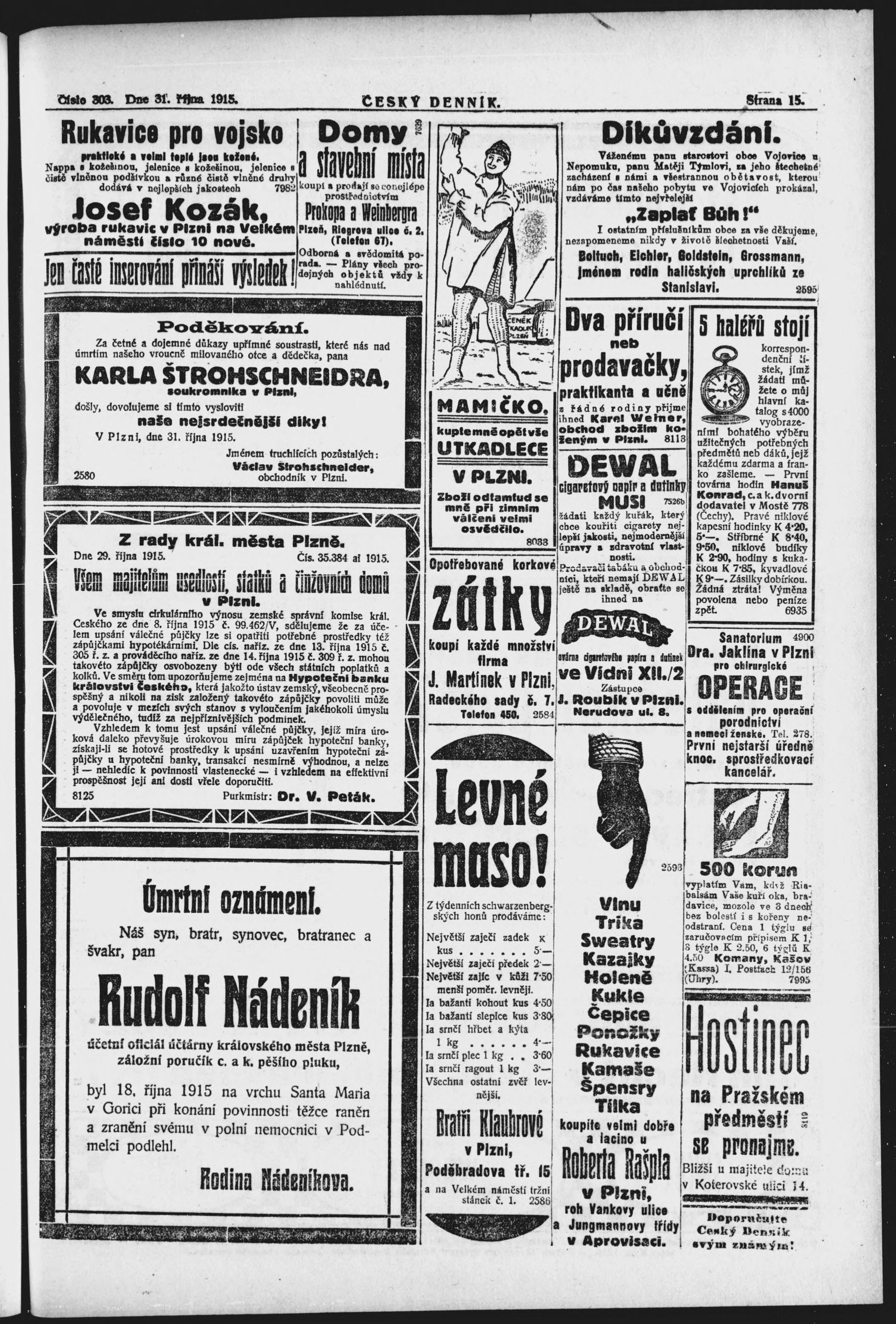 * Datum vydání výtisku: 31.10.1915 Číslo výtisku: 303
