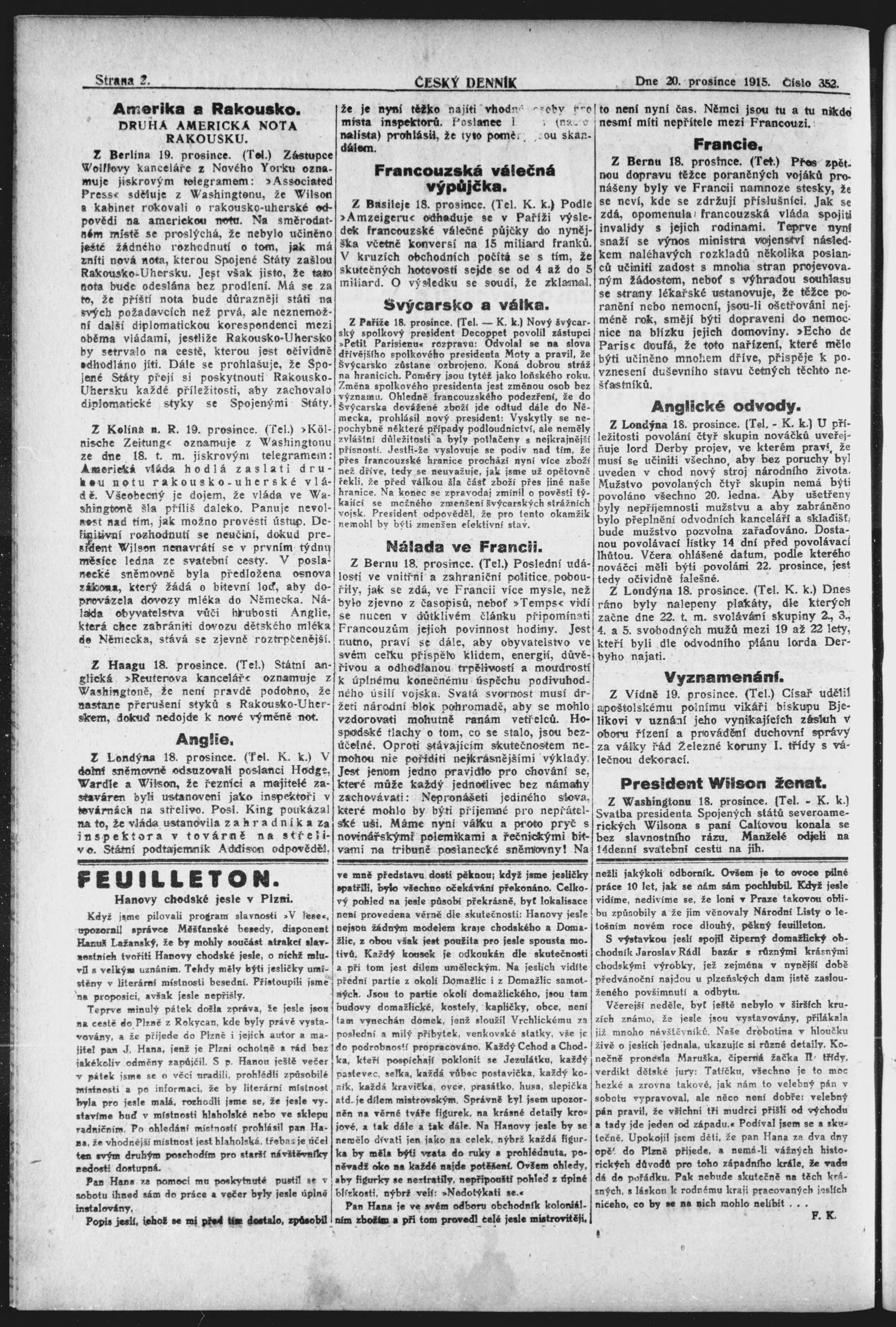 * Datum vydání výtisku: 20.12.1915 Číslo výtisku: 352