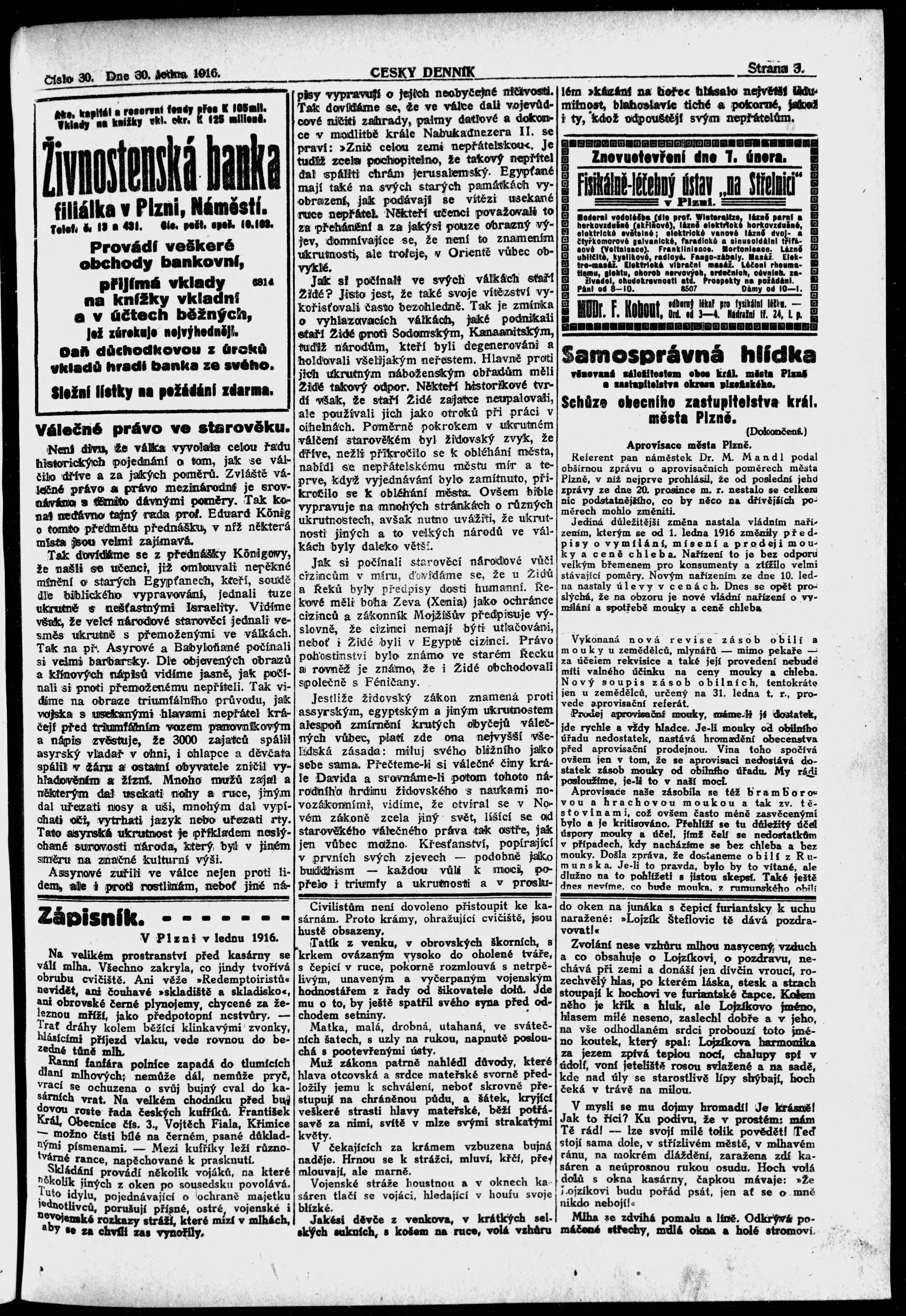 * Datum vydání výtisku: 30.1.1916 Číslo výtisku: 30