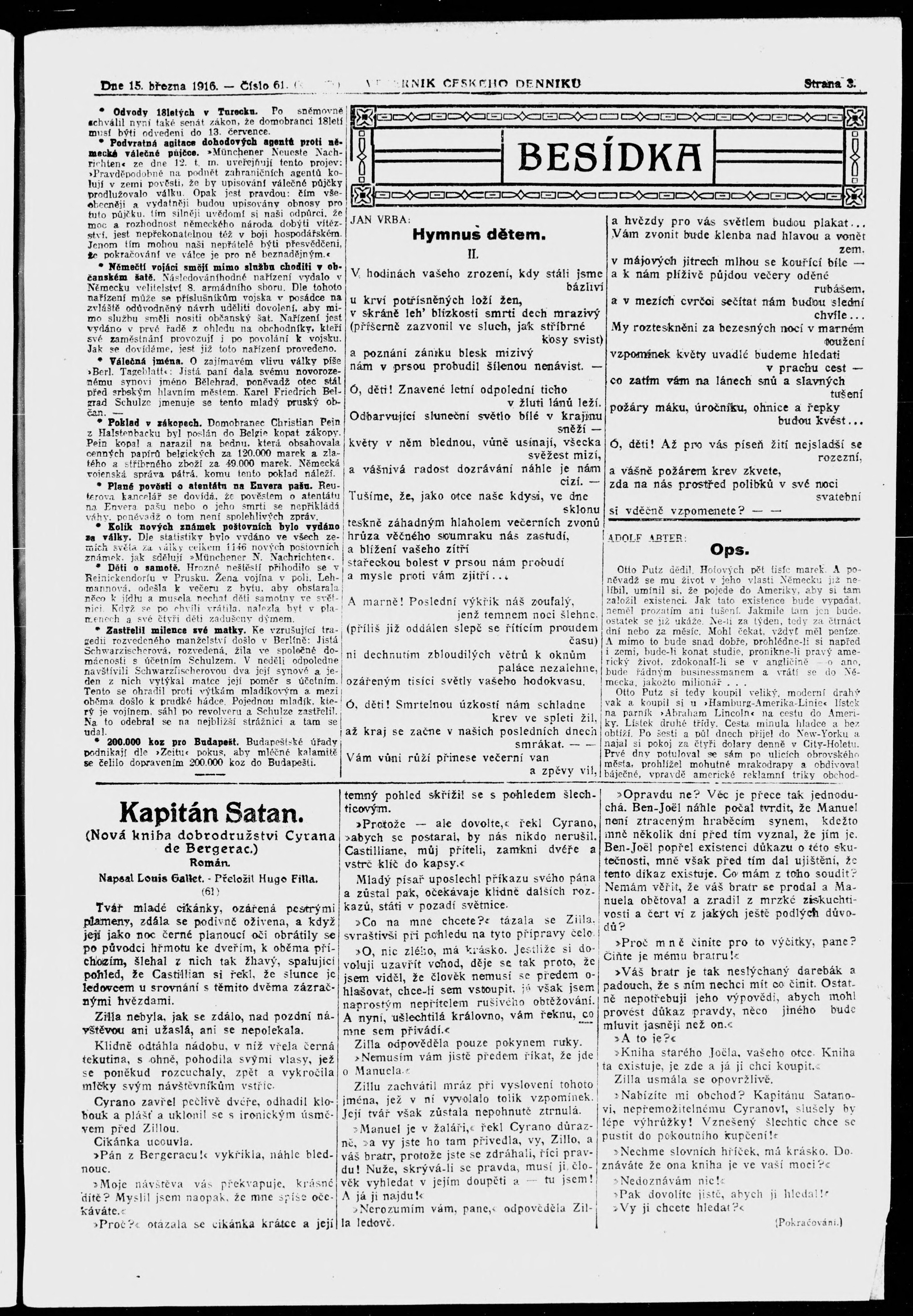 * Datum vydání výtisku: 15.3.1916 Číslo výtisku: 61 Poznámky k výtisku: večerní vydání;
