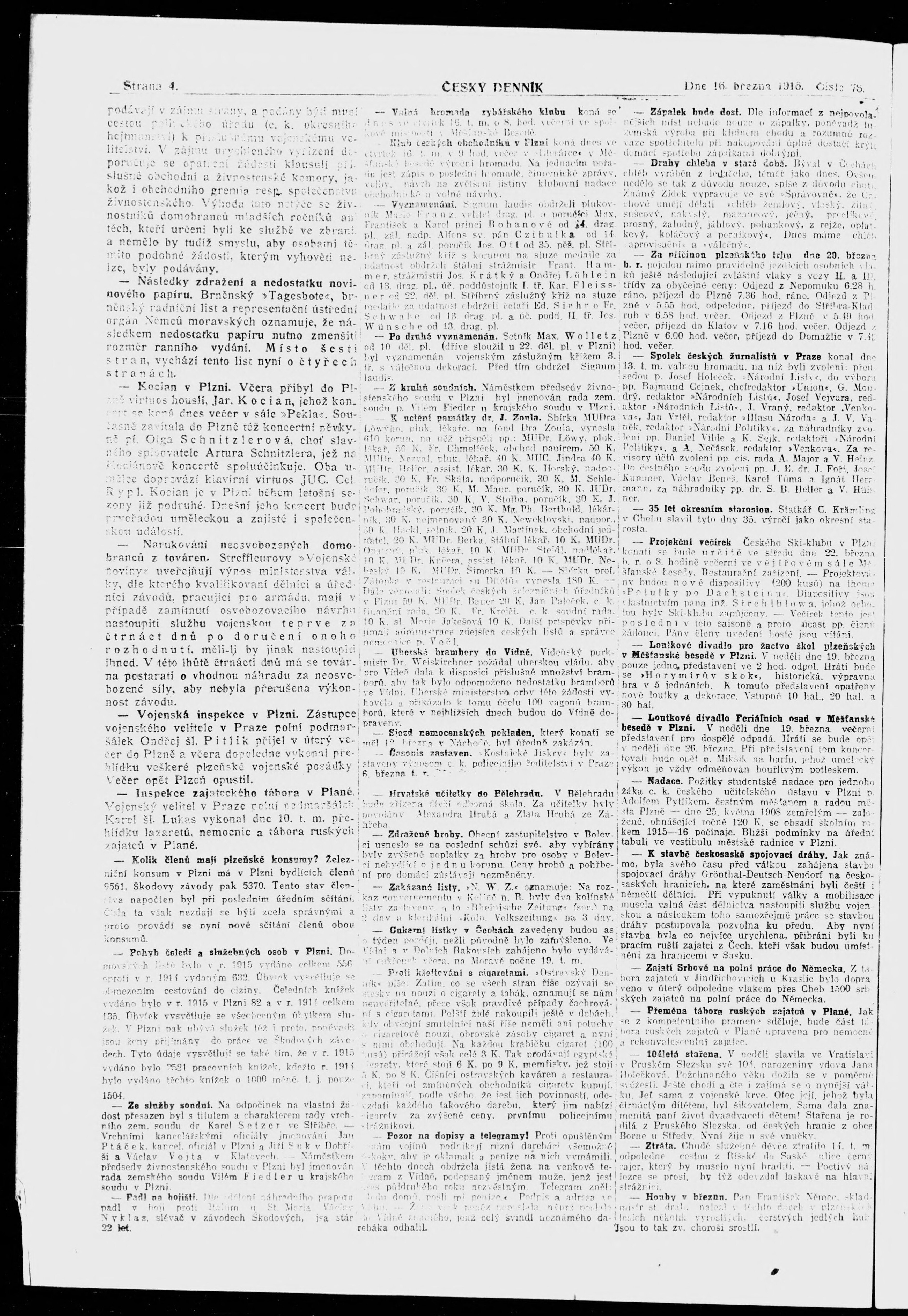 * Datum vydání výtisku: 16.3.1916 Číslo výtisku: 76