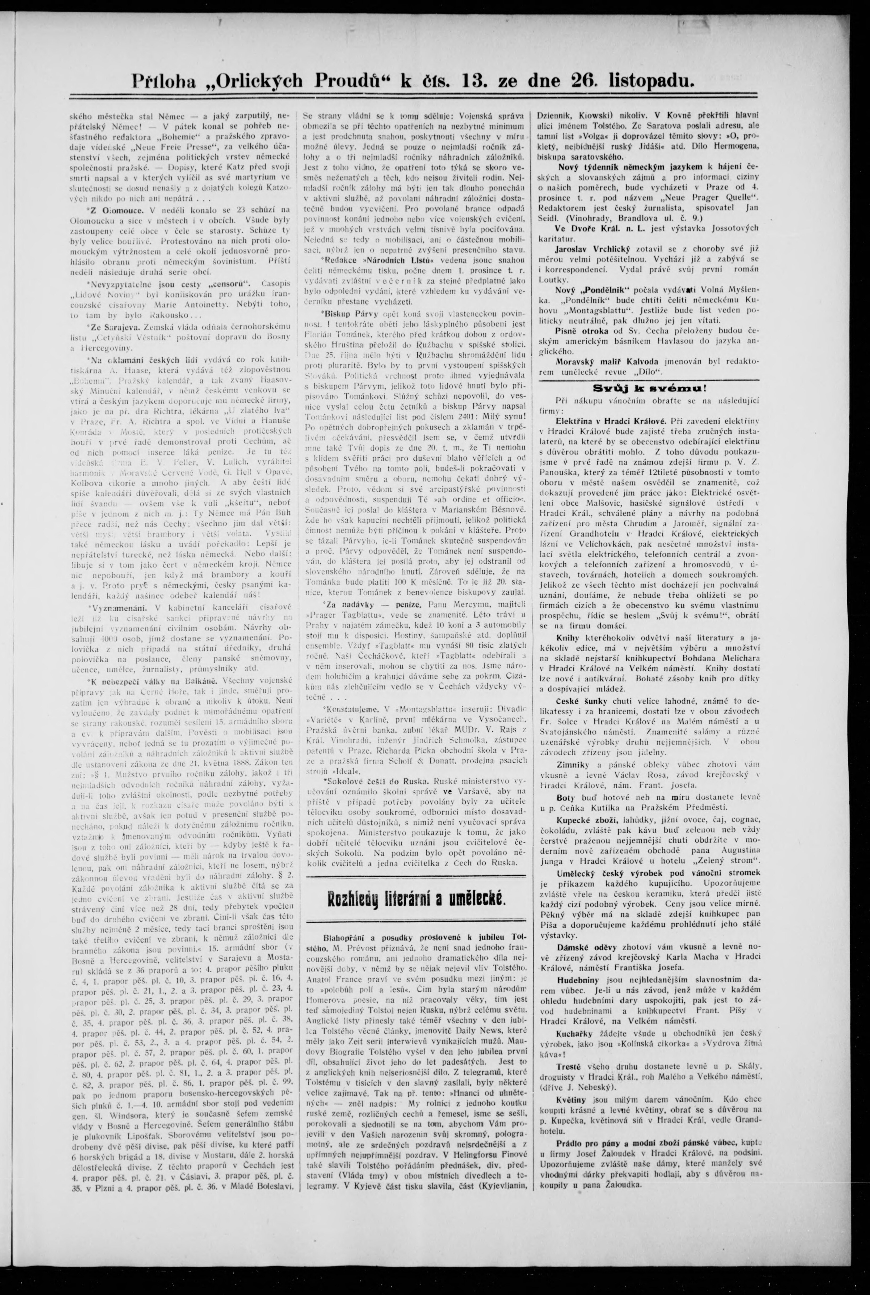 * Datum vydání výtisku: 26.11.1908 Číslo výtisku: 13