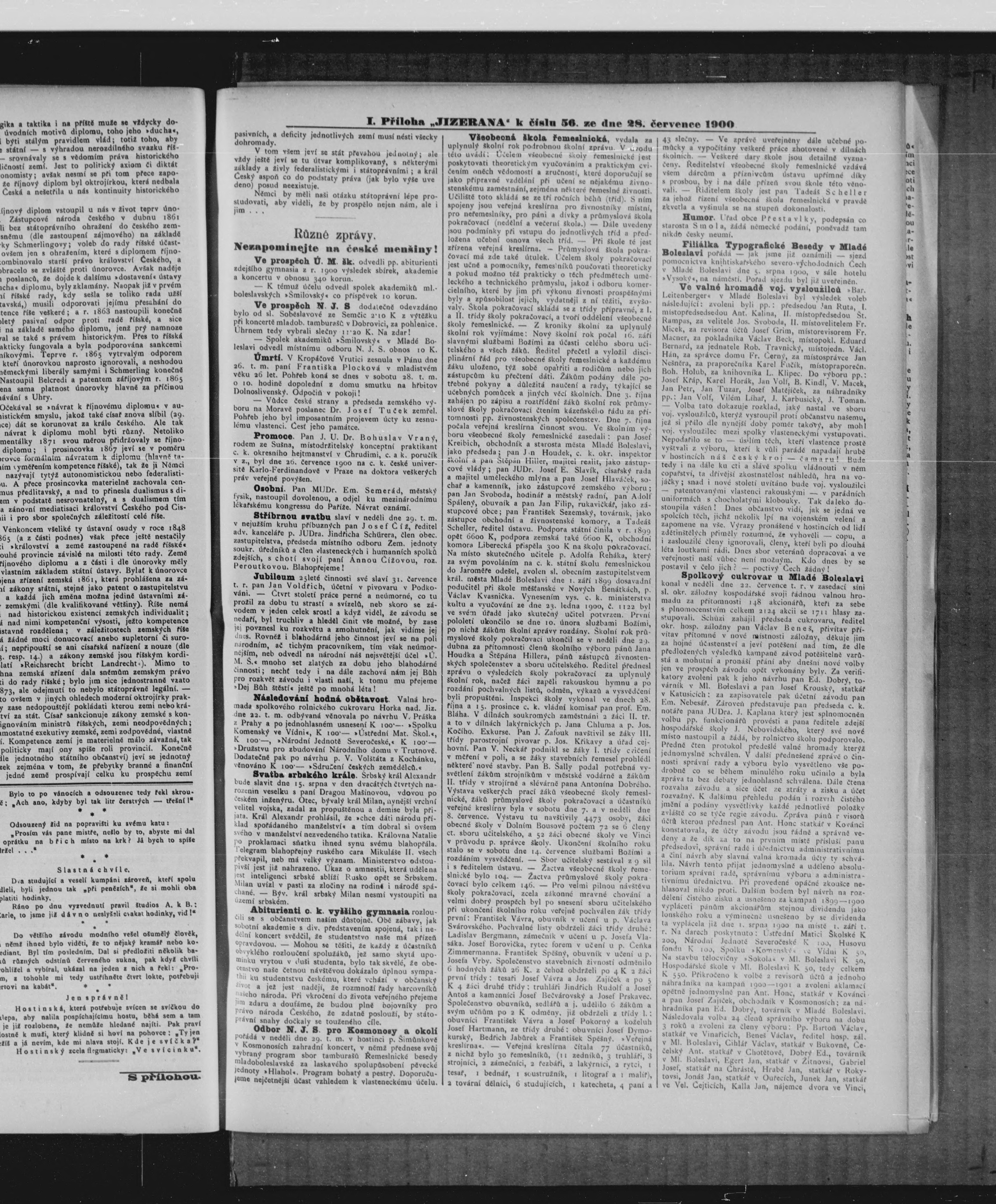 * Datum vydání výtisku: 28.7.1900 Číslo výtisku: 56