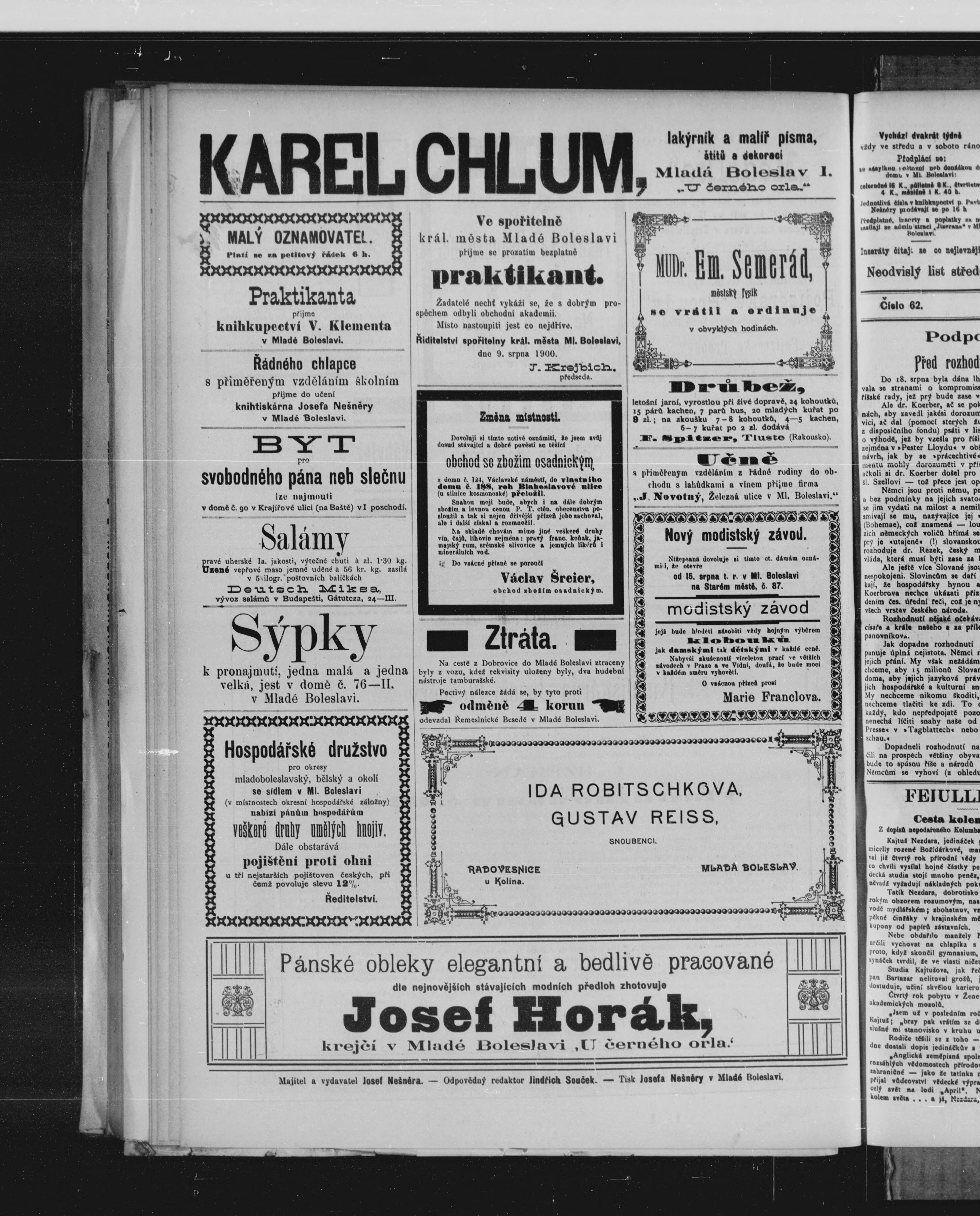 * Datum vydání výtisku: 15.8.1900 Číslo výtisku: 61
