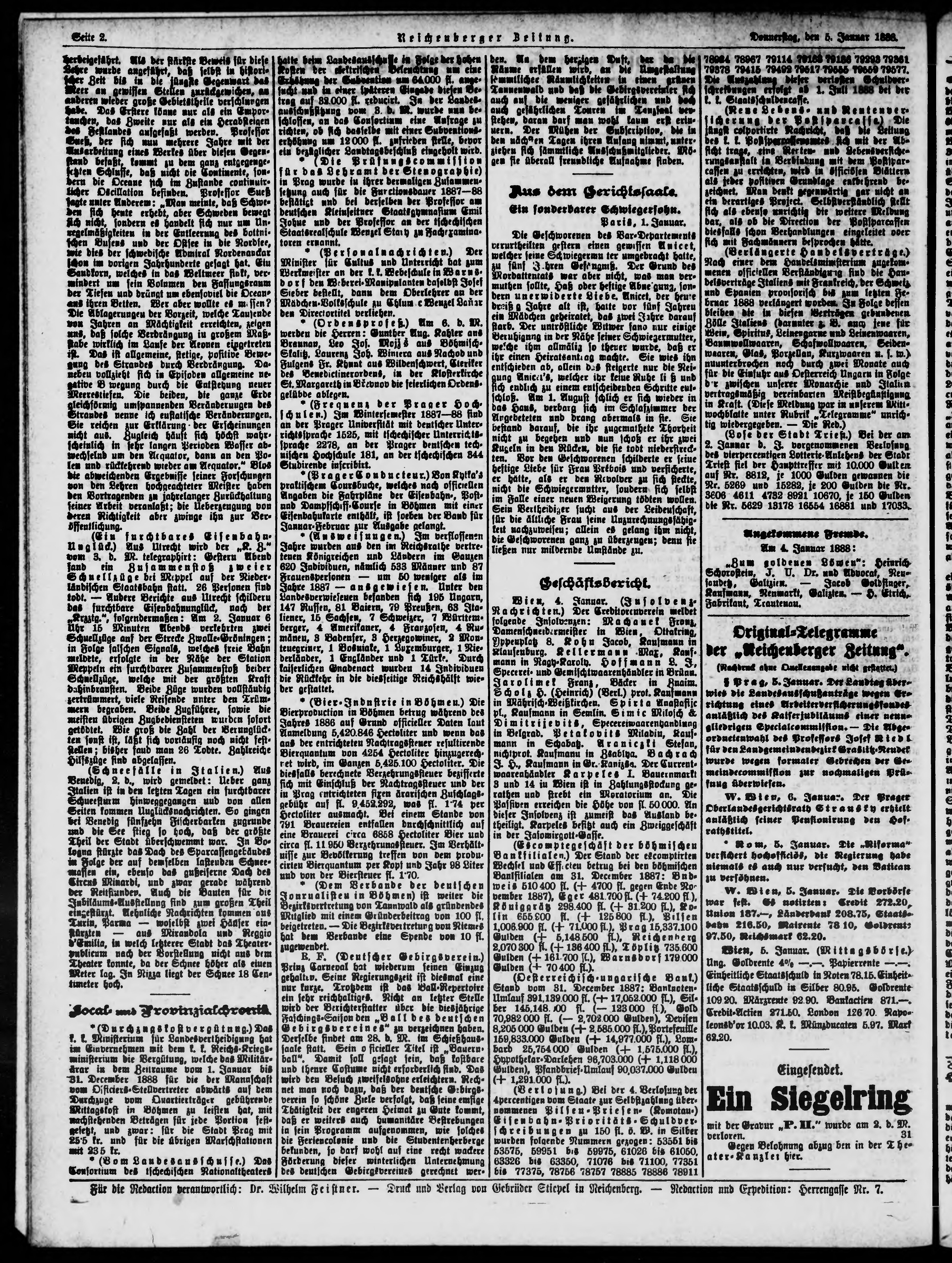 * Datum vydání výtisku: 6.1.1888 Číslo výtisku: 5