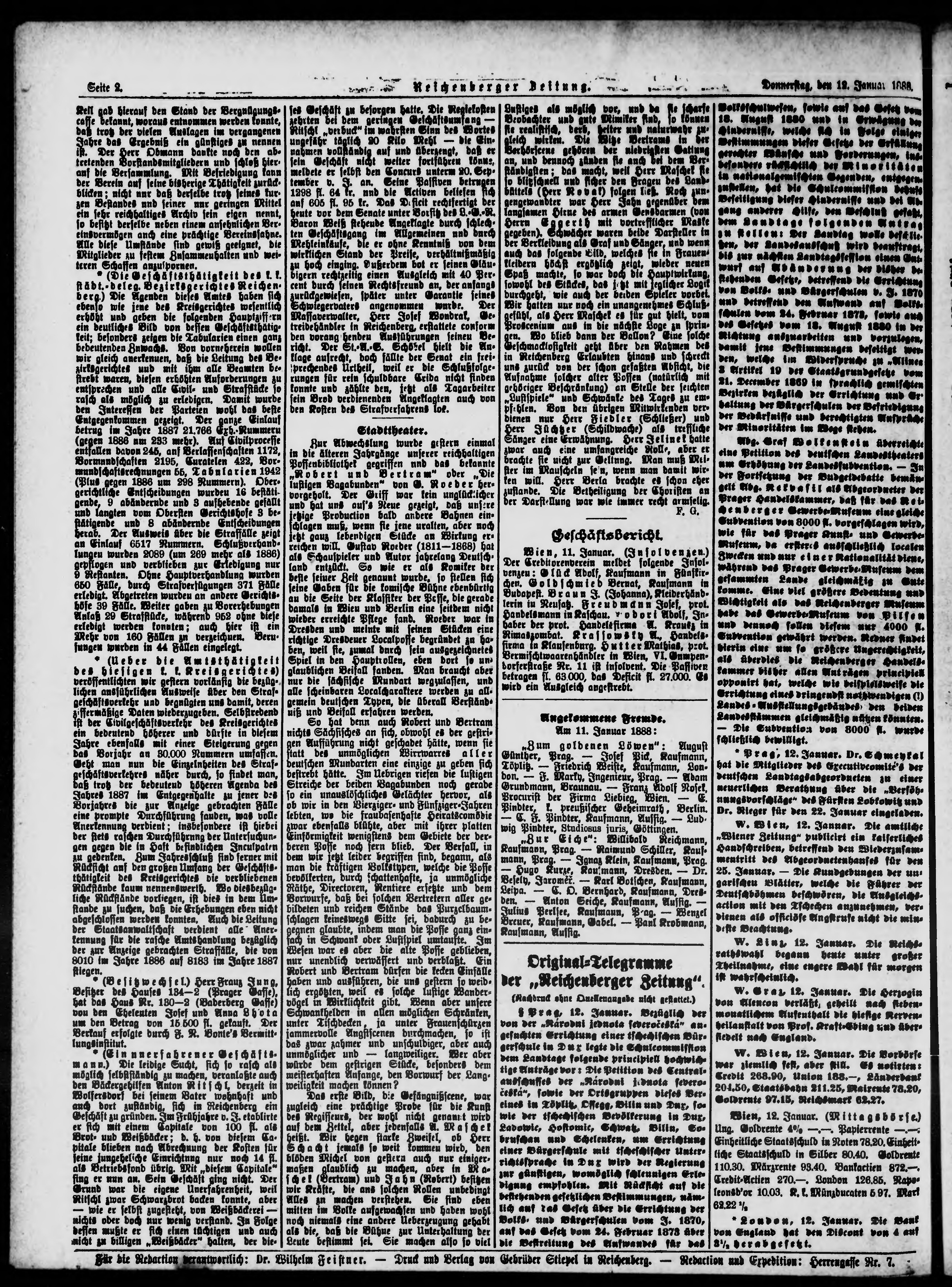 * Datum vydání výtisku: 13.1.1888 Číslo výtisku: 10