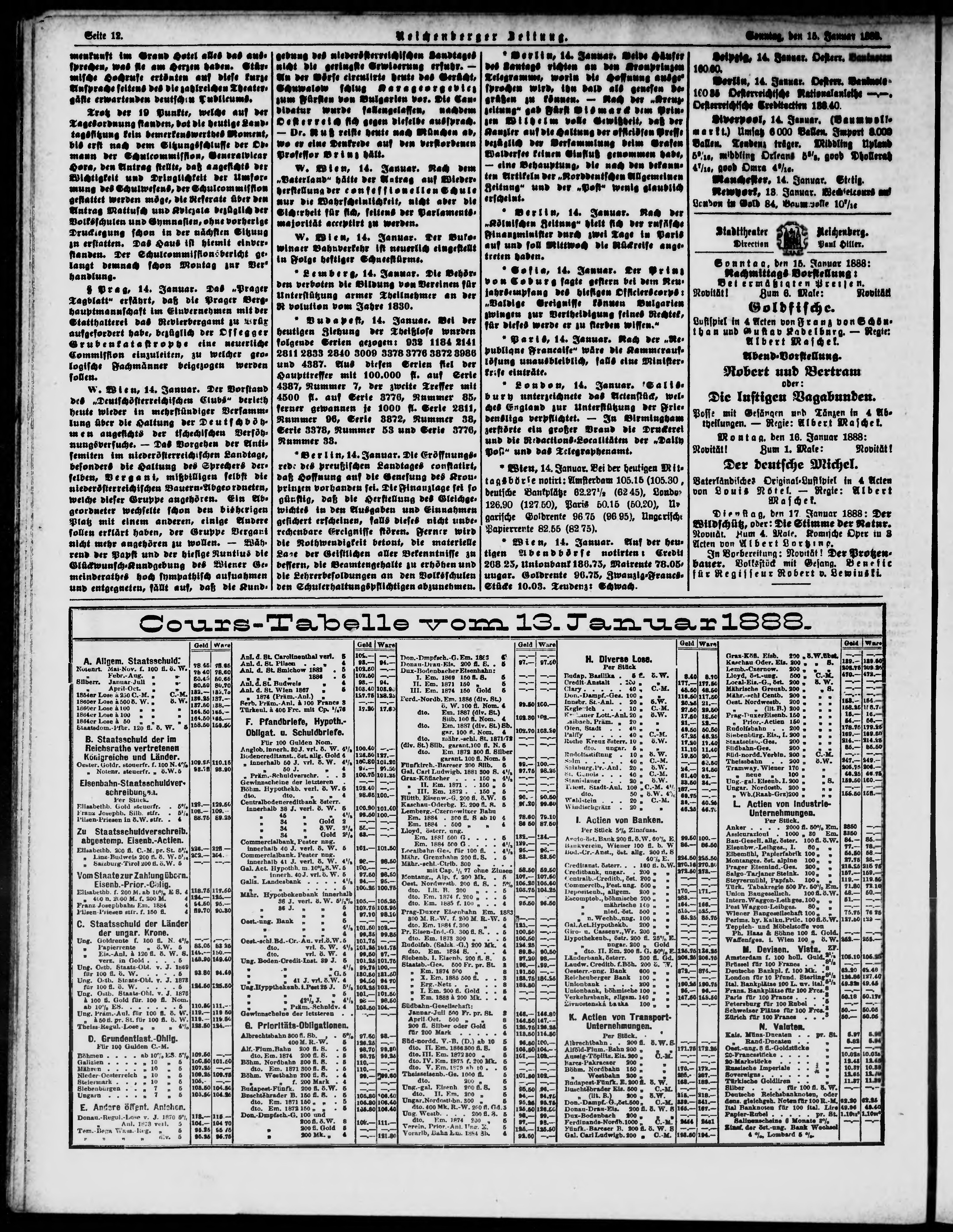 * Datum vydání výtisku: 15.1.1888 Číslo výtisku: 12