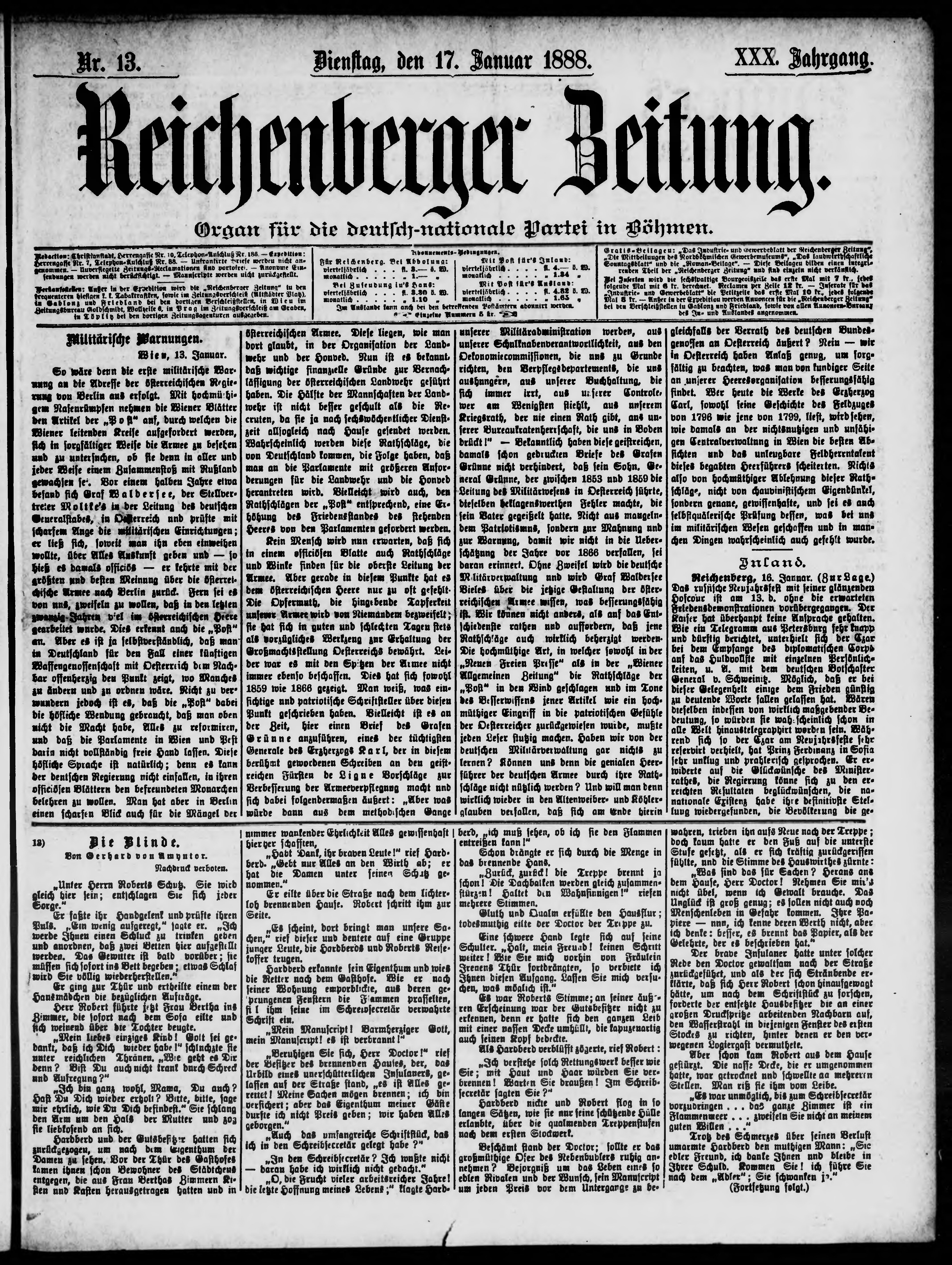 * Datum vydání výtisku: 17.1.1888 Číslo výtisku: 13